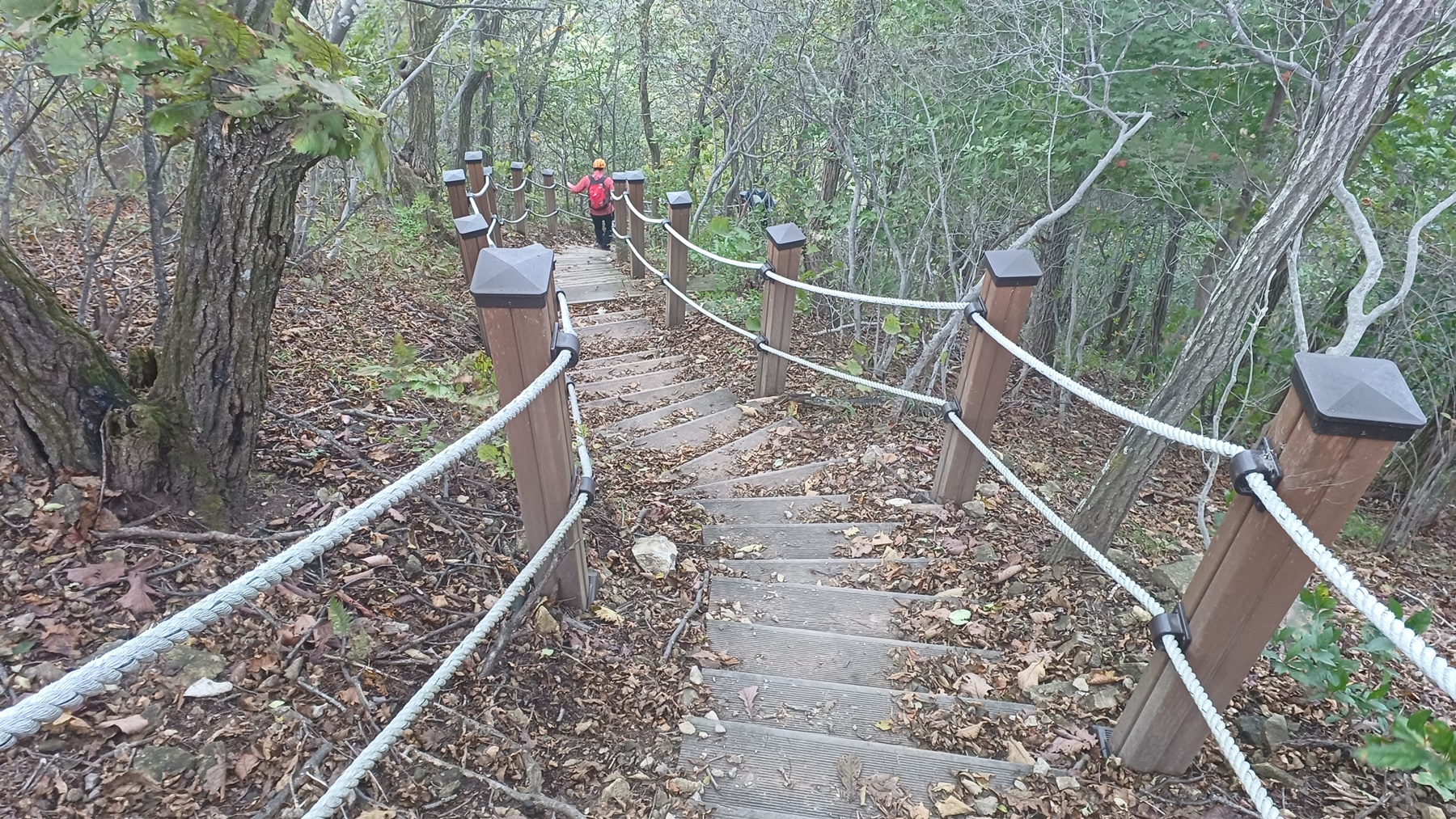 안부 갈림길을 지나 직진하여 목계단으로 올라