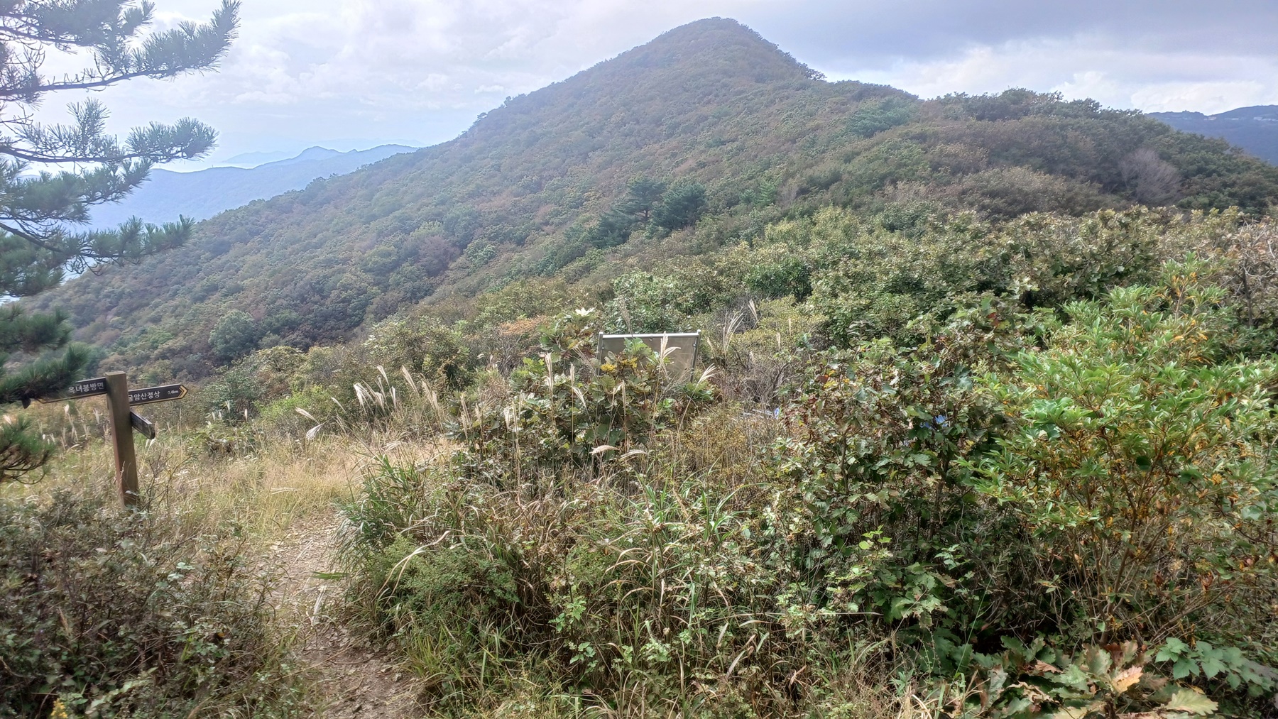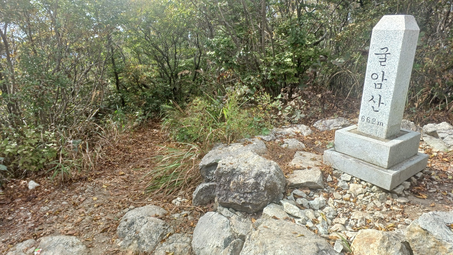 우측 능선으로 오르는 금일 목적지인 굴암산 정상이 보인다.