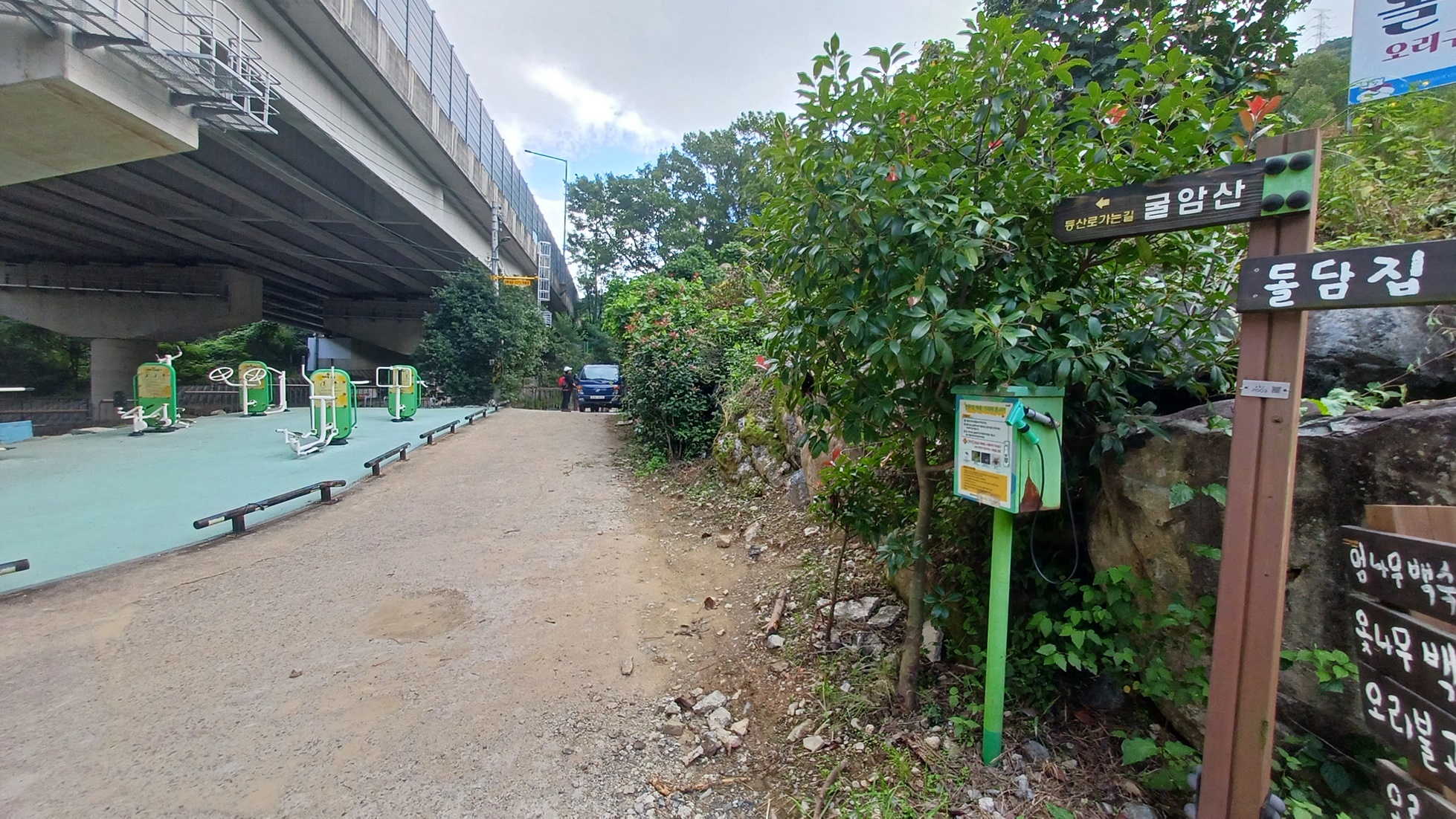 좌측 운동 기구와 굴암산 방향으로 신안2교 아래로 따라가면