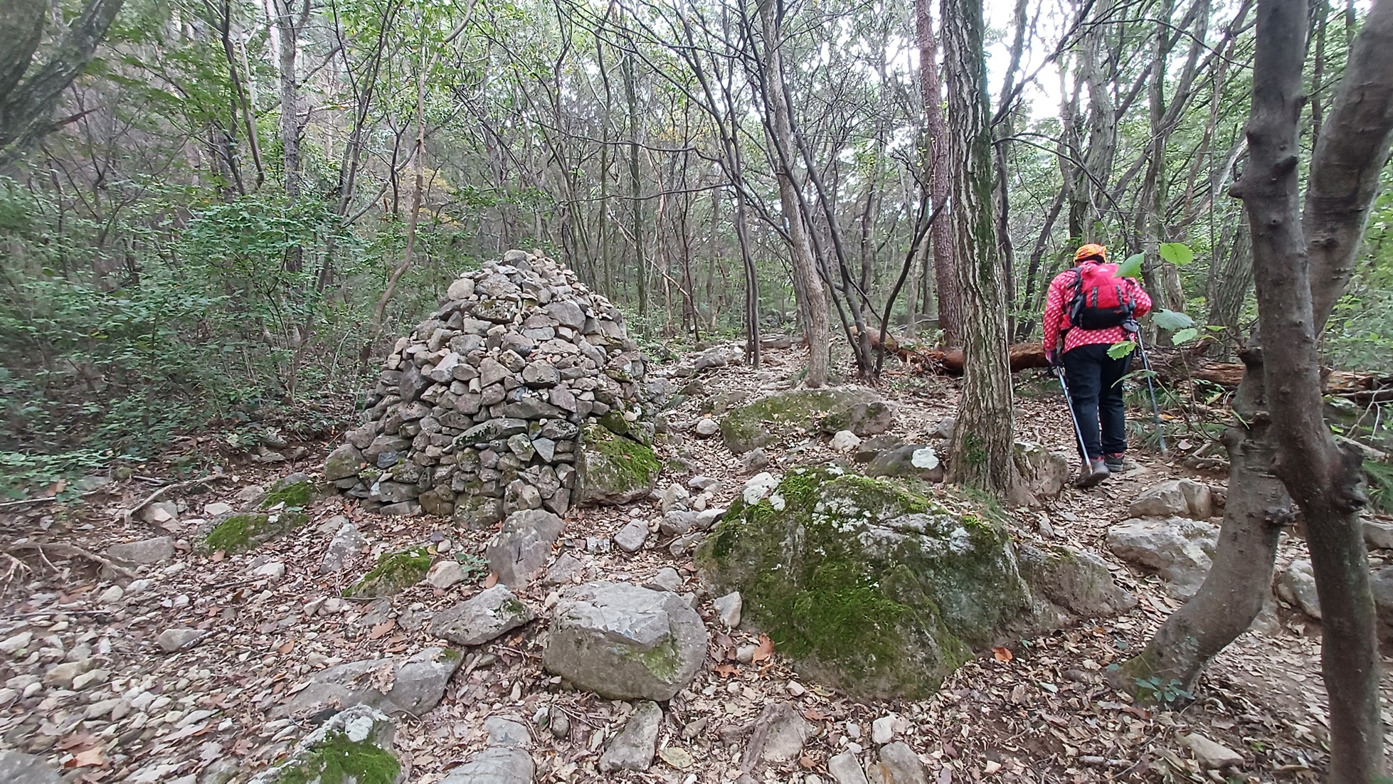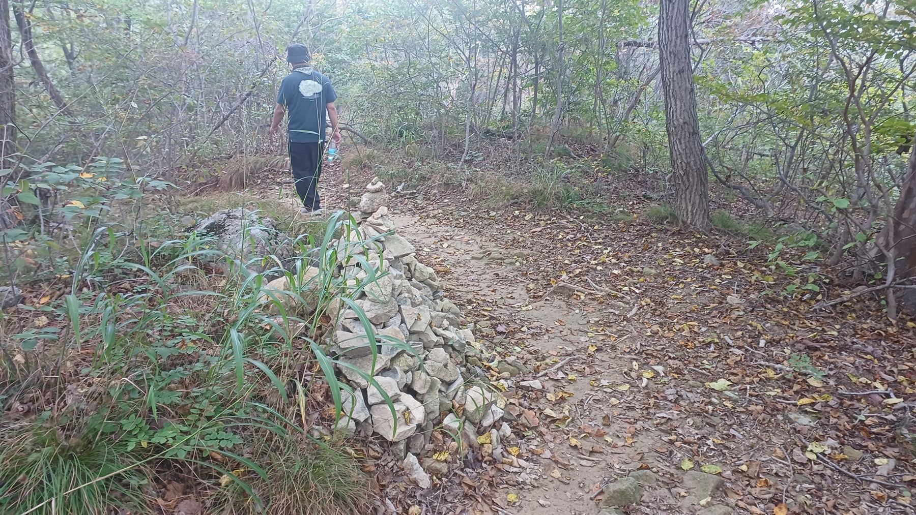 조그만한 돌탑 지점에서 좌측으로 휘어져 내려가면