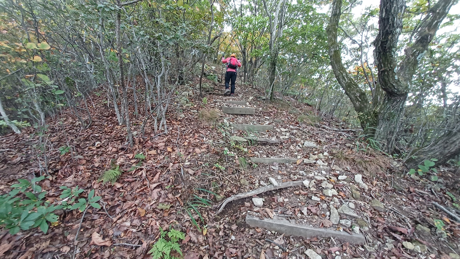 우측 가파른 능선길은 관동 삼거리에서 오는 능선길이다.