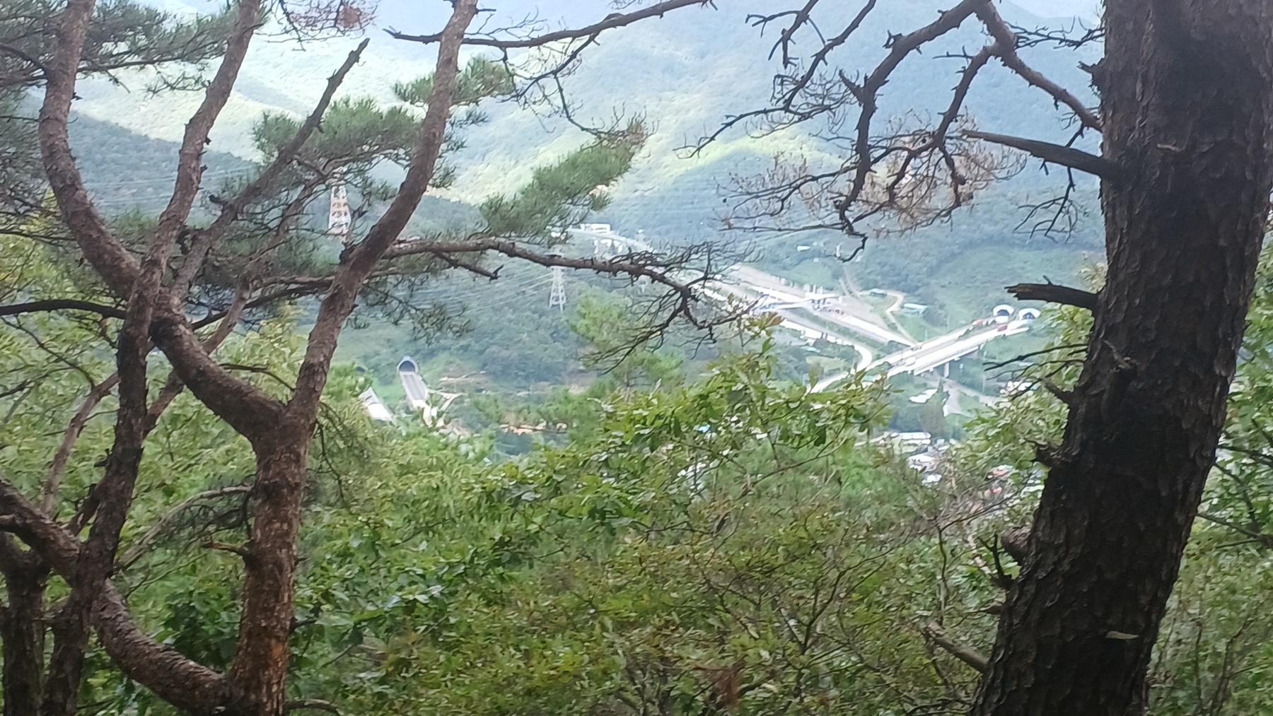 국립 용지봉 자연 휴양림이 위치한 상부에는 용지봉이 보이고,