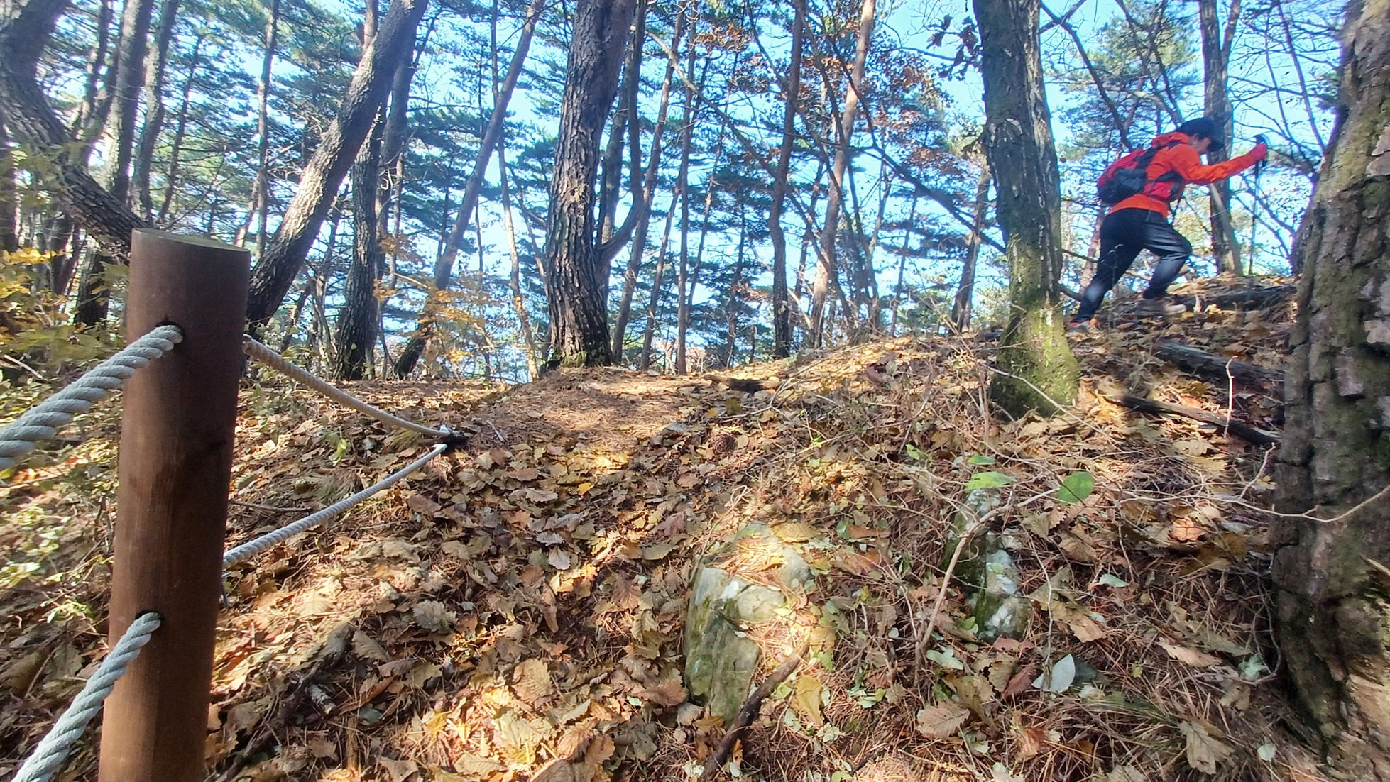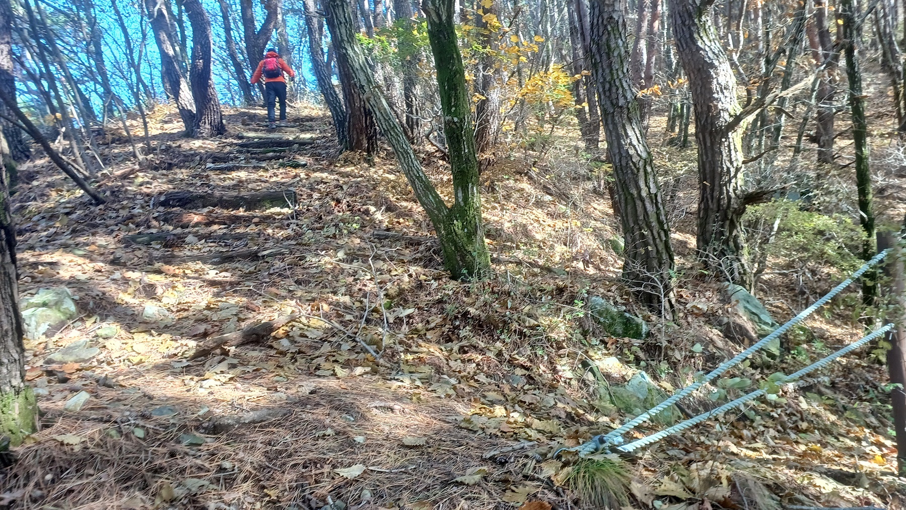 로프 난간이 끝나는 지점에서 우측으로 오르막 능선길을 따라 오르면