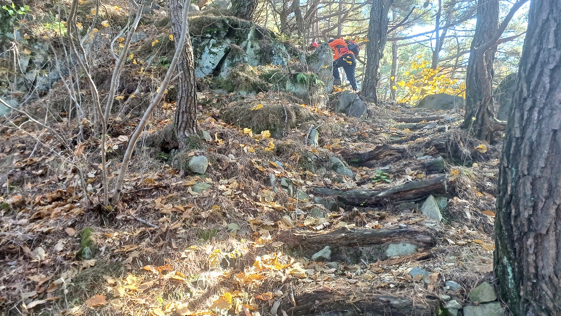 오르막길에 바위 사이를 지나고