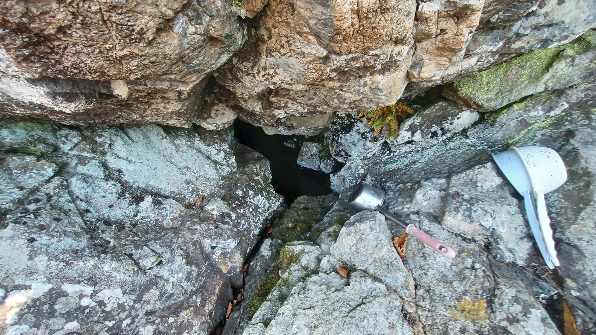 약수터에는 고인 음수 불가능한 물이 고여 있다.