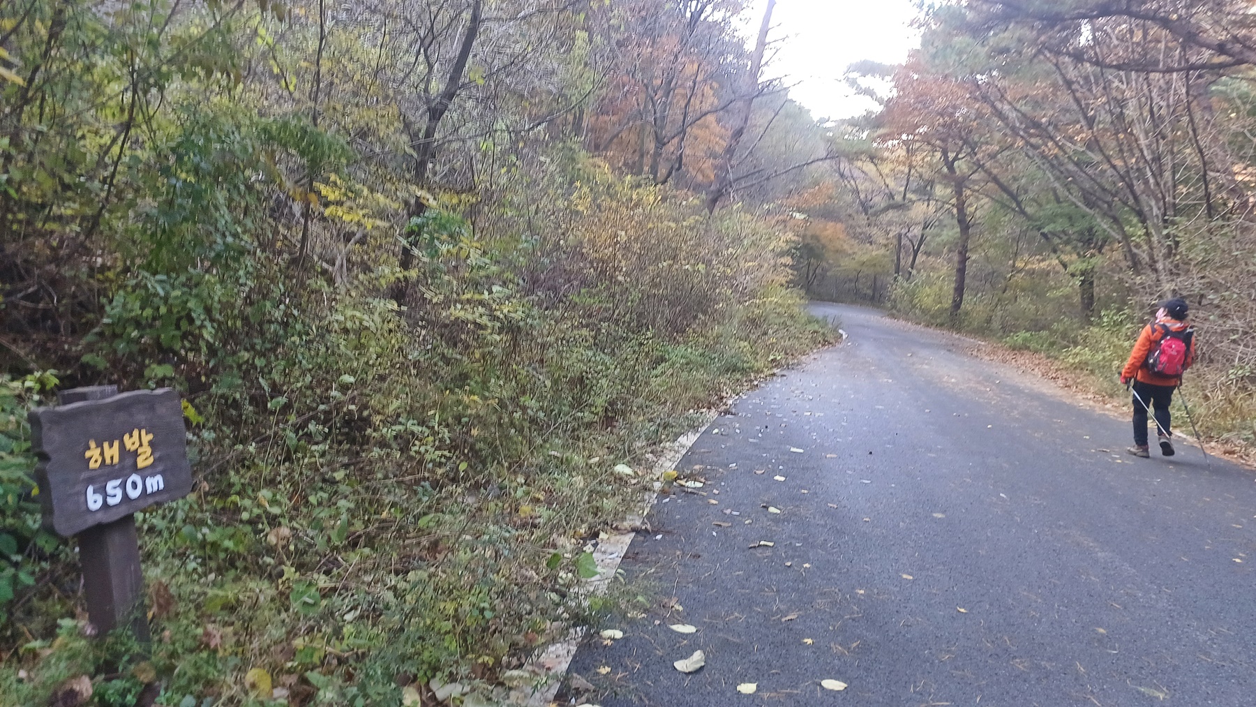 해발 650m지점의 임도를 지나고