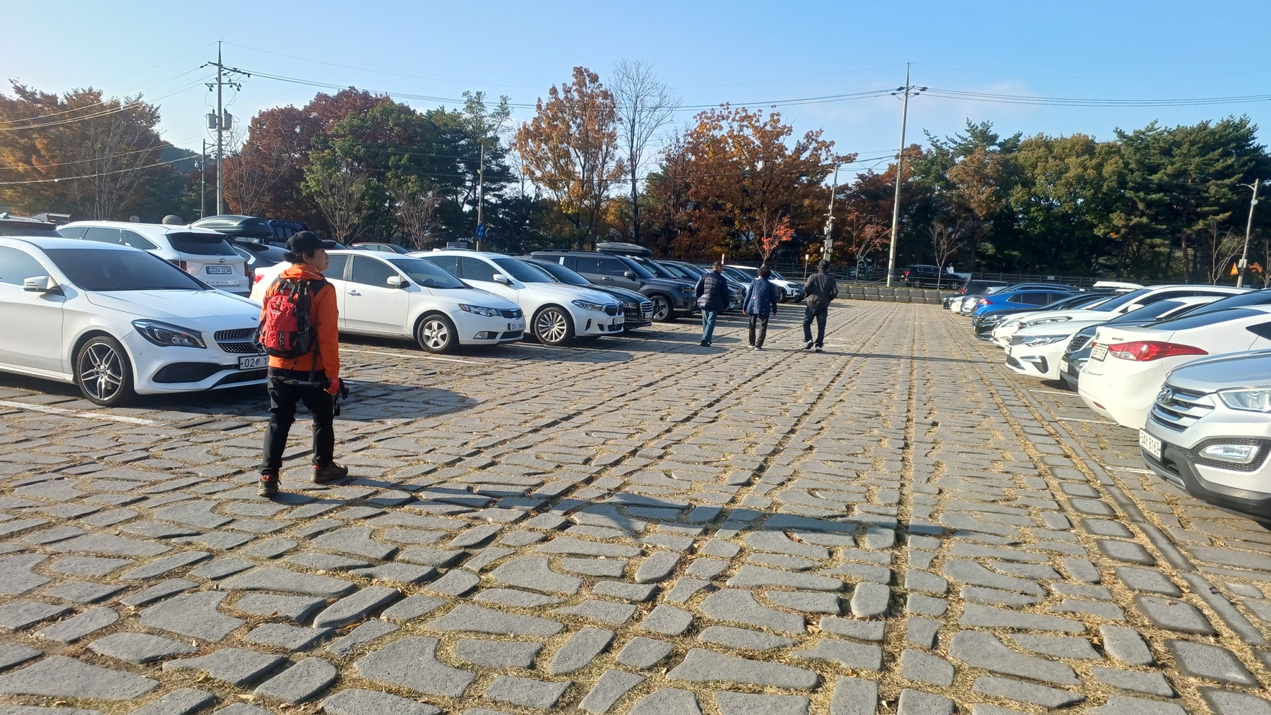 아래에는 들머리인 주차장이 보이고,