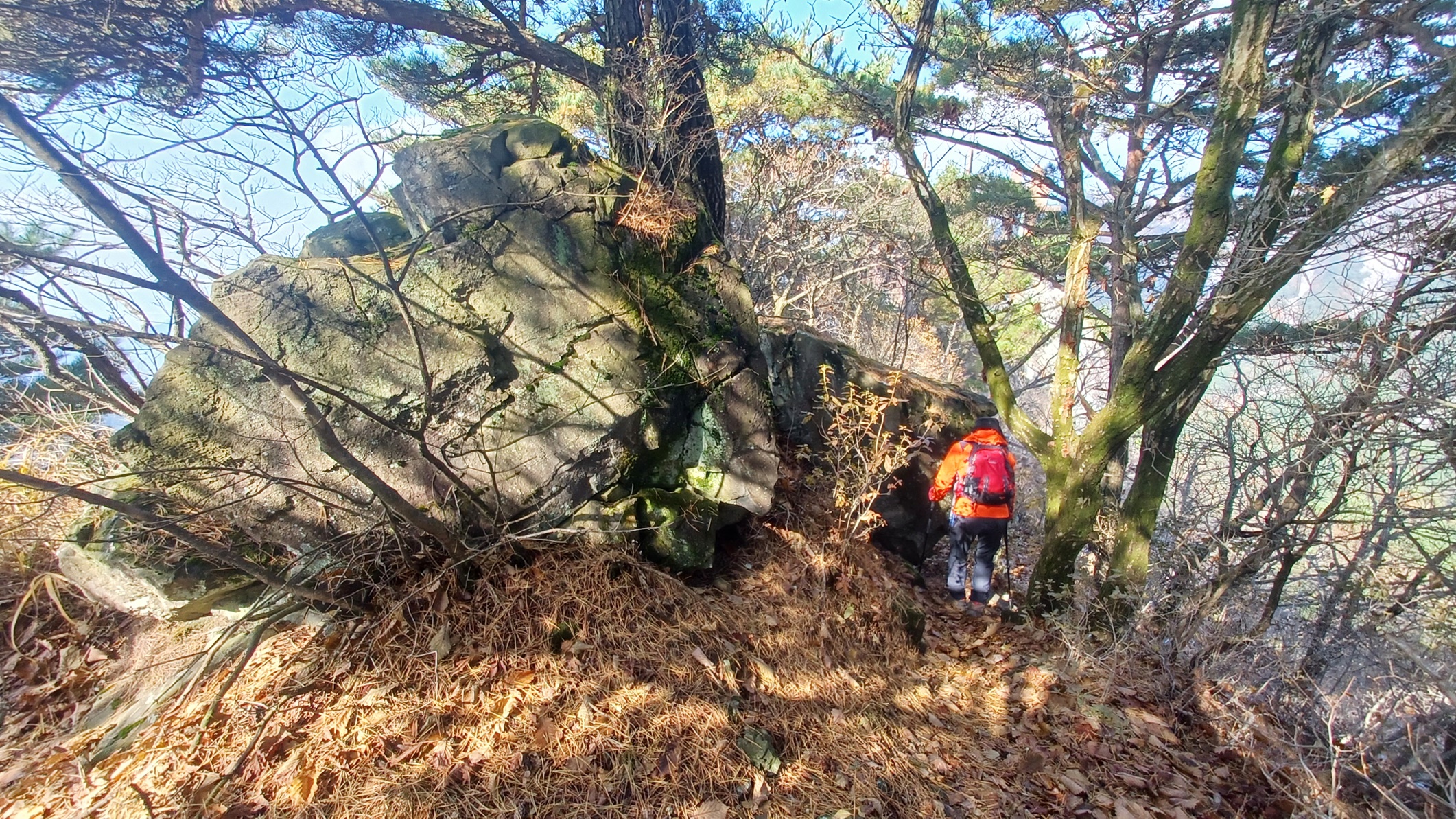 널부러진 바위 사이 능선길로 오르면