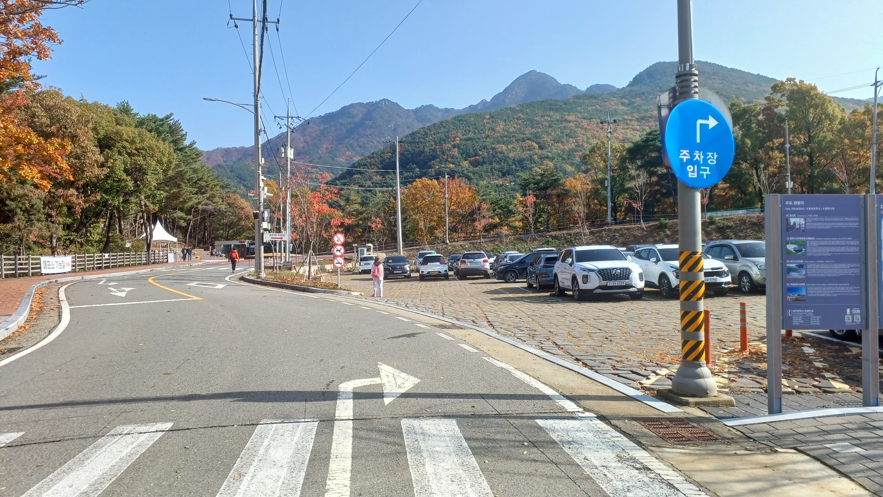 주차장 뒷편으로 횡단 보도를 따라 가면