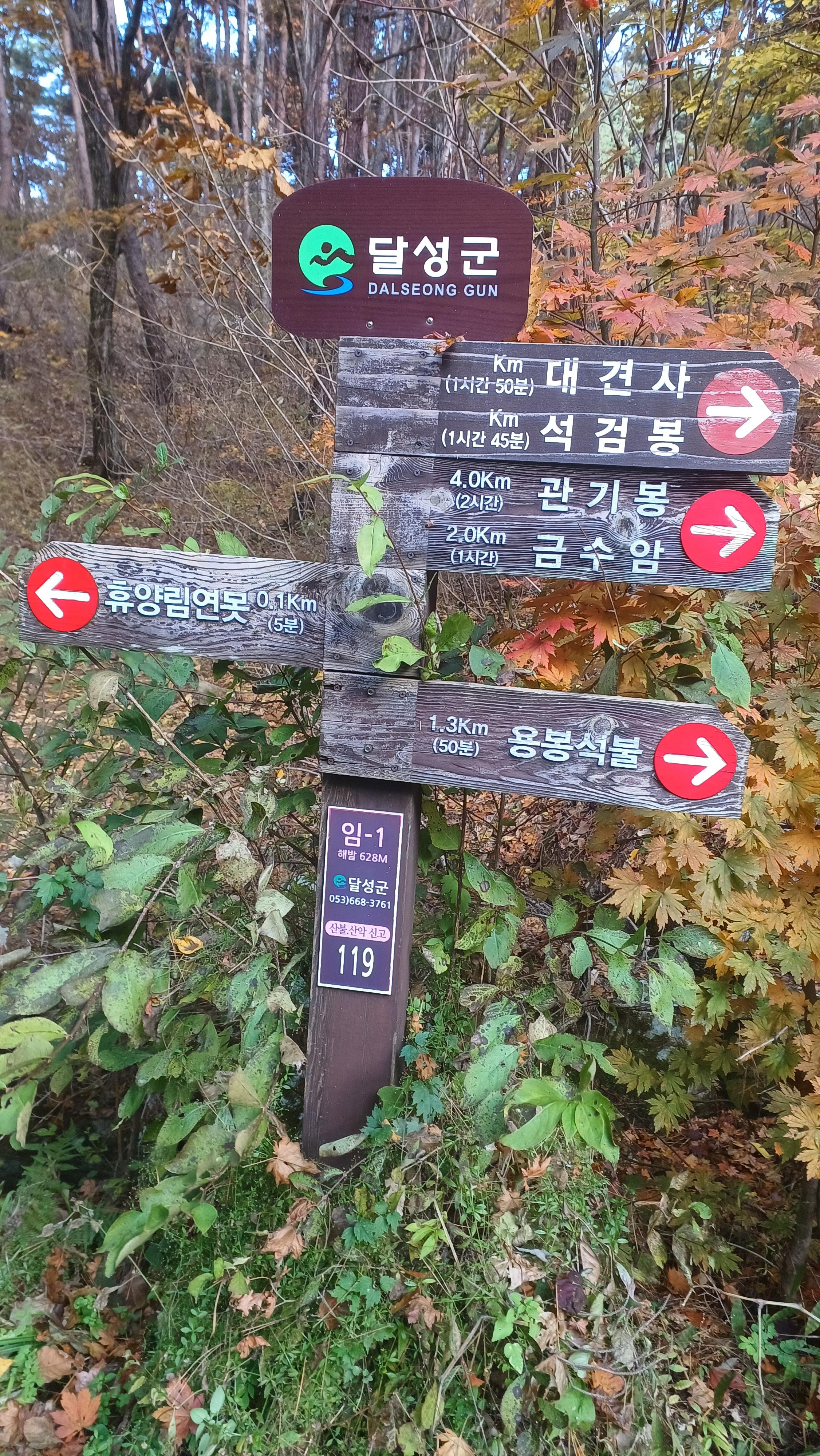 호텔 아젤리아 공영 주차장-용알 바위-갈림길/비슬산 산림 치유 센터-이정표/풍경치유길/관기봉-이정표(숲내음길)