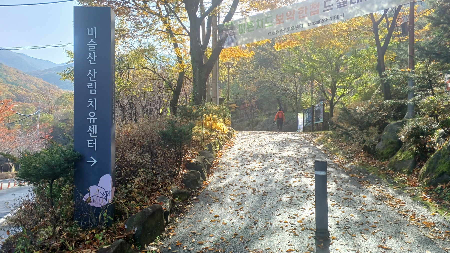 치유 센터 입구 입간을 지나면
