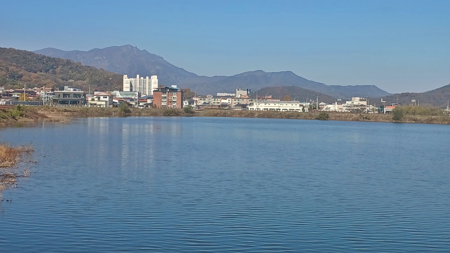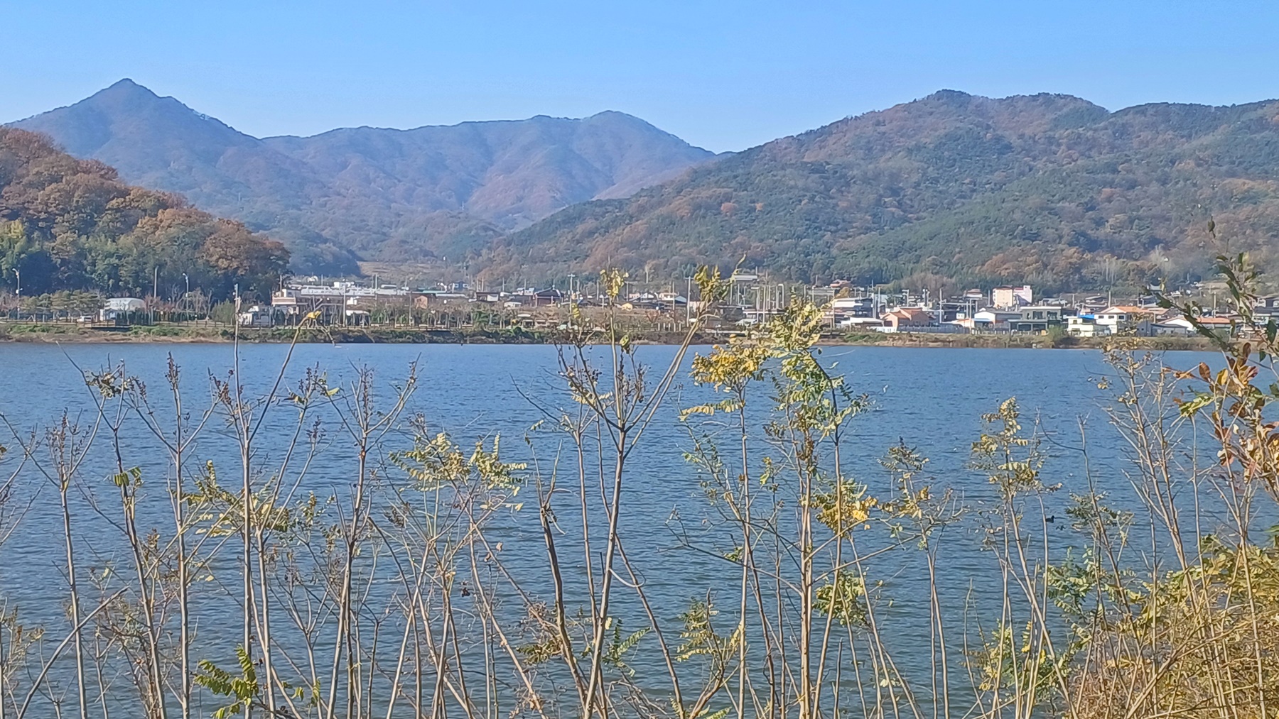 둑 건너 편으로 남계리의 마을 들이 보이고