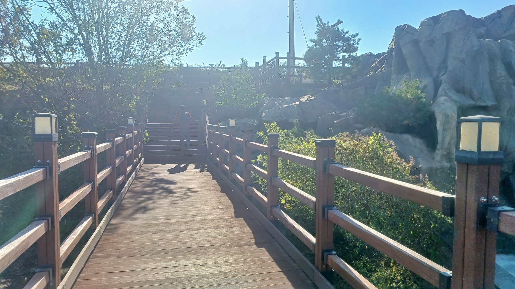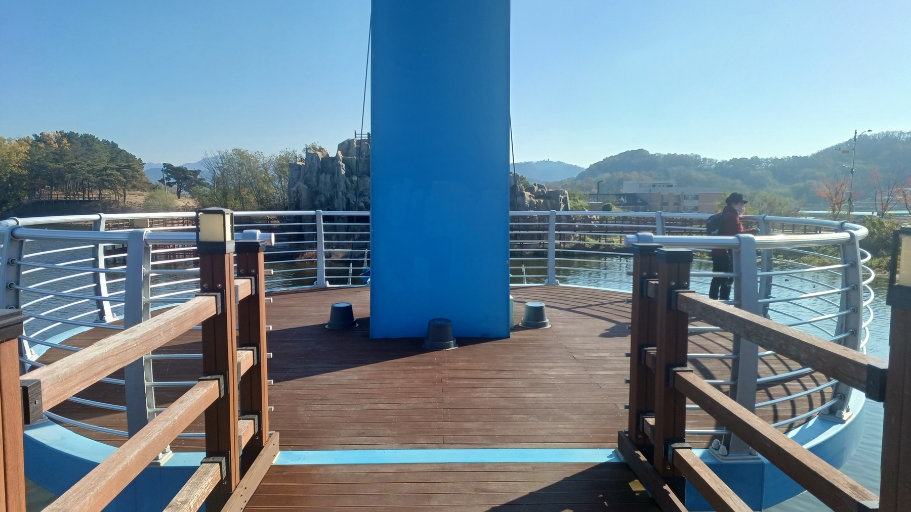 좌측으로 인공 폭포와 출렁 다리가 보이고