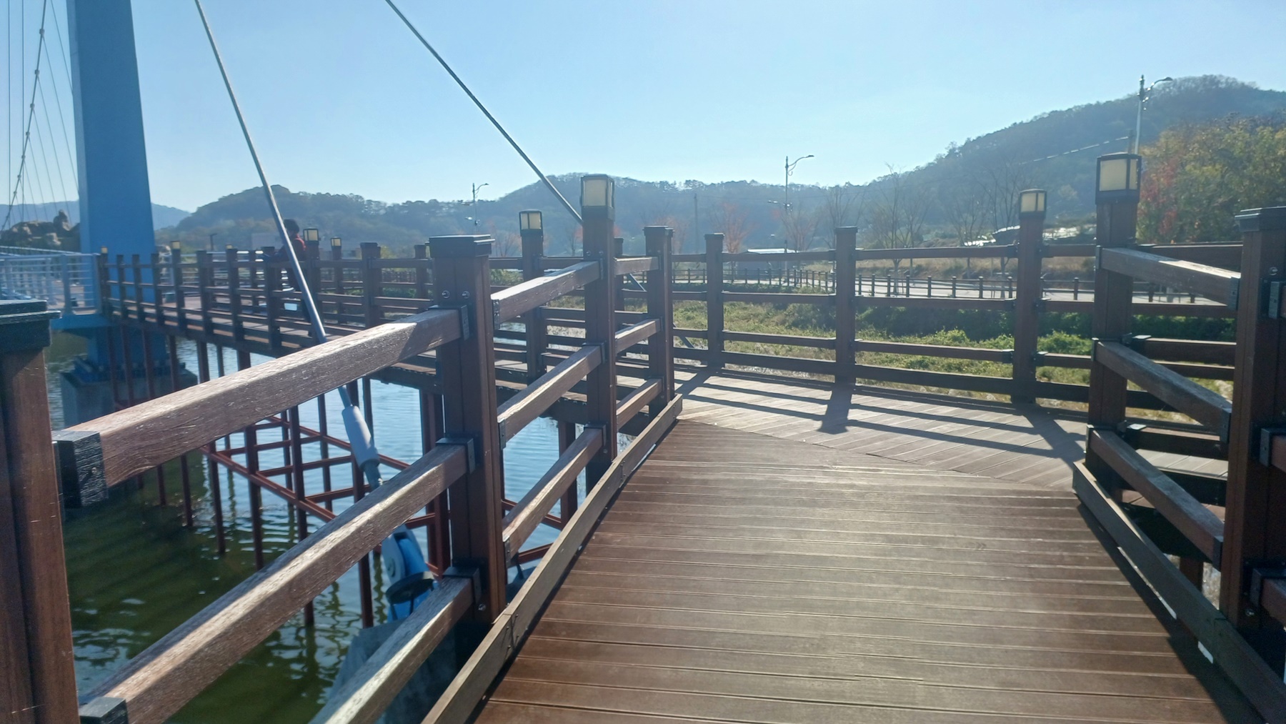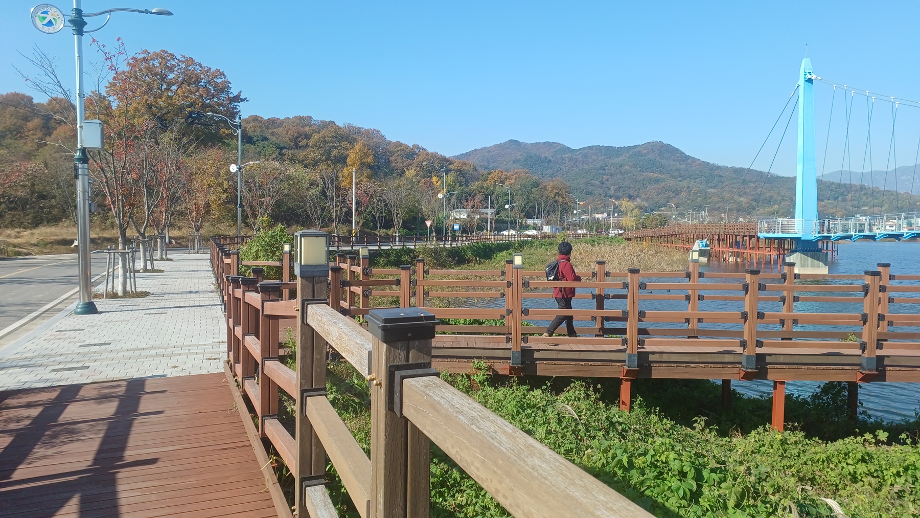 출렁다리가 보이는 방향으로 수변 데크길을 따라가면