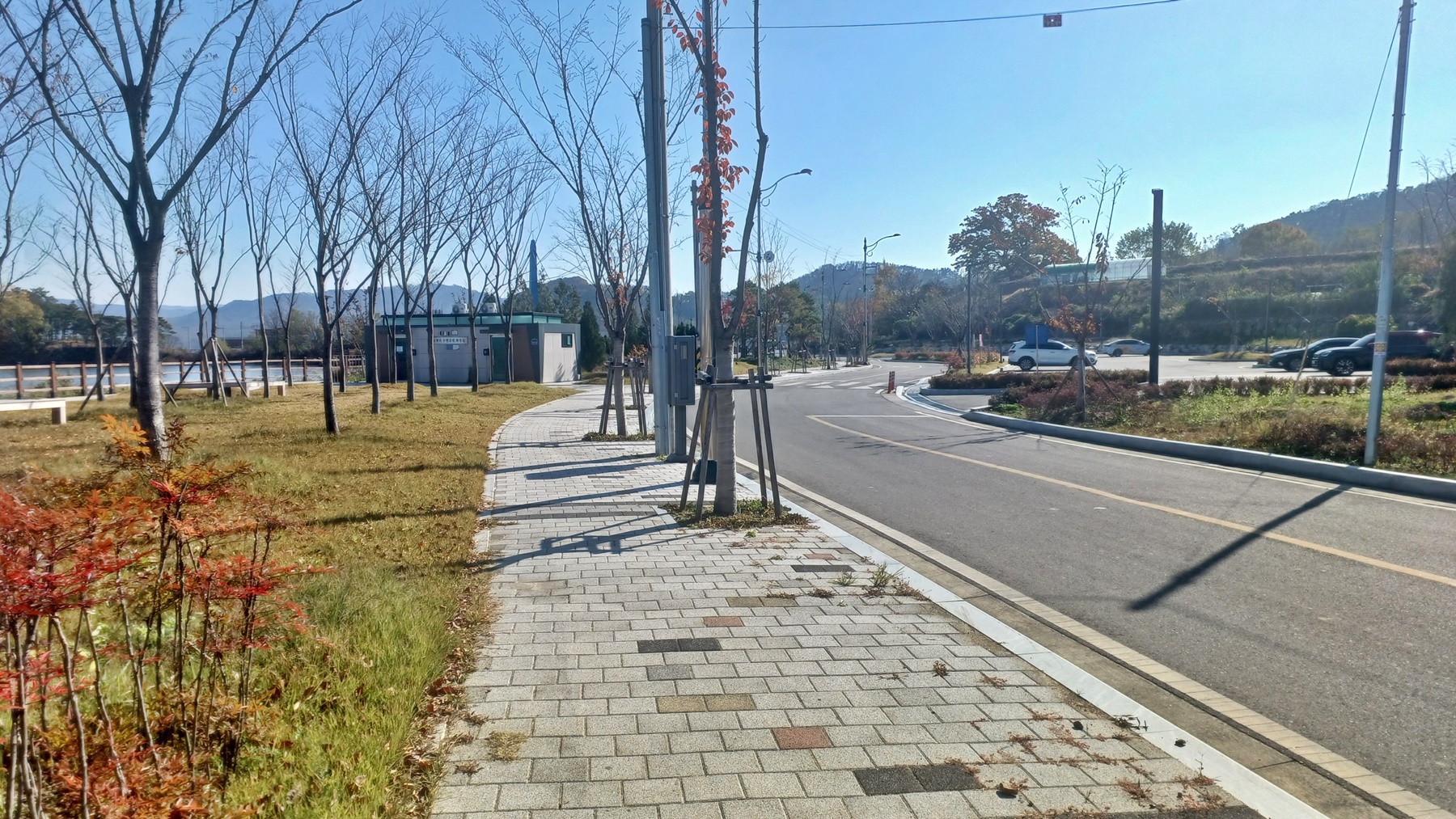 화장실 우측으로 보이는 남계지 주차장으로 되돌아와 종료하는 남계지 수변 둘레길이다.