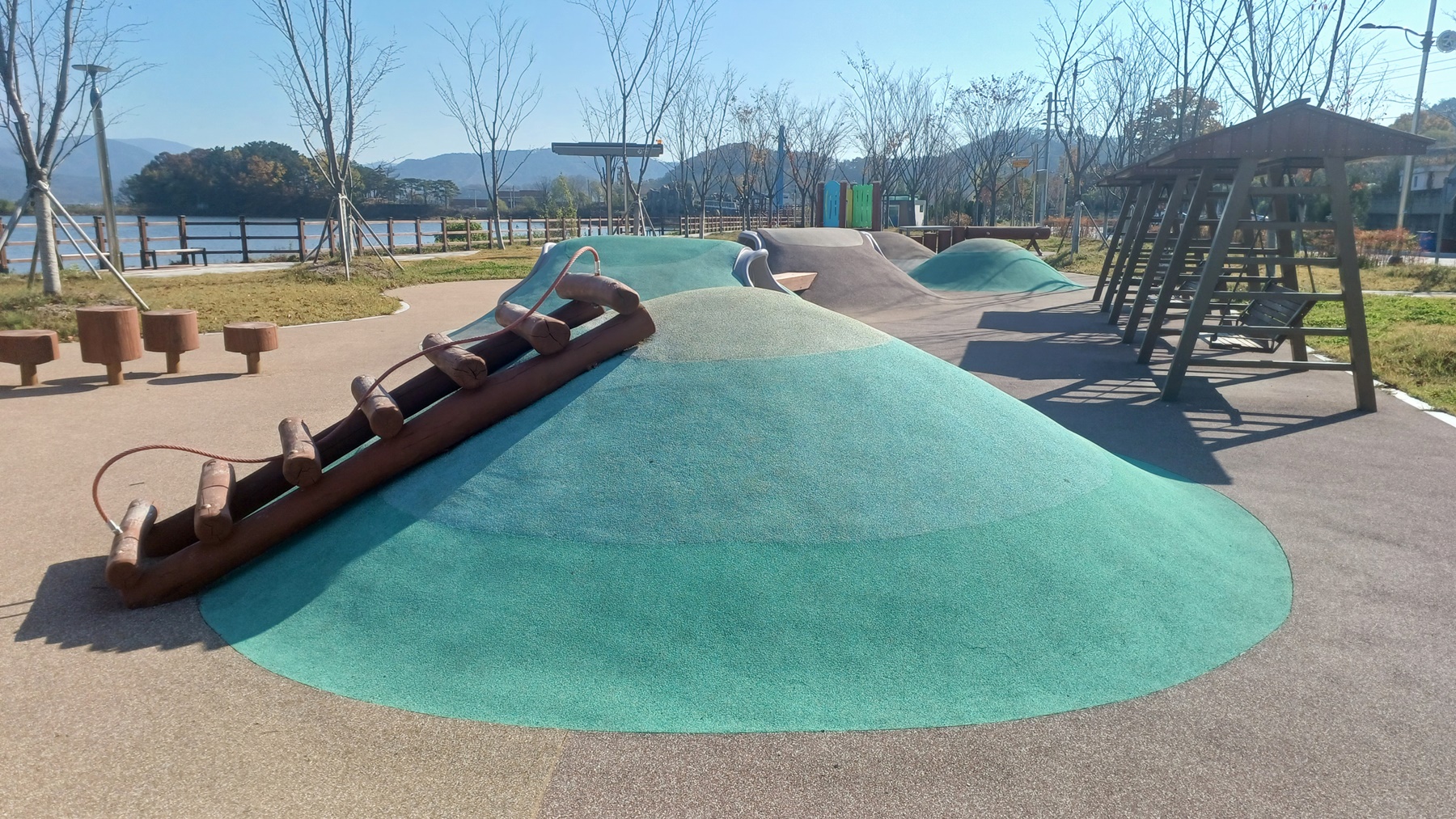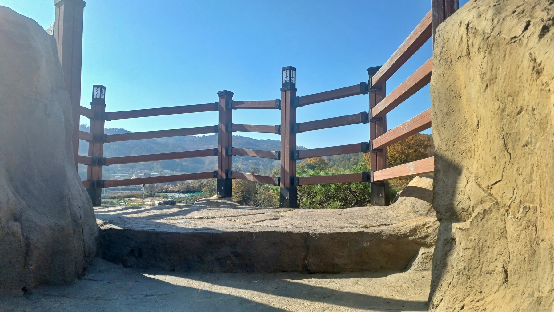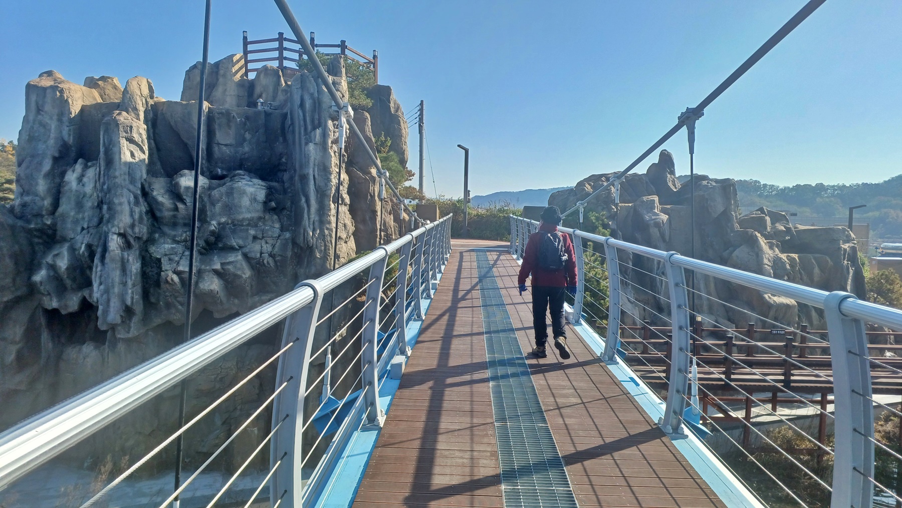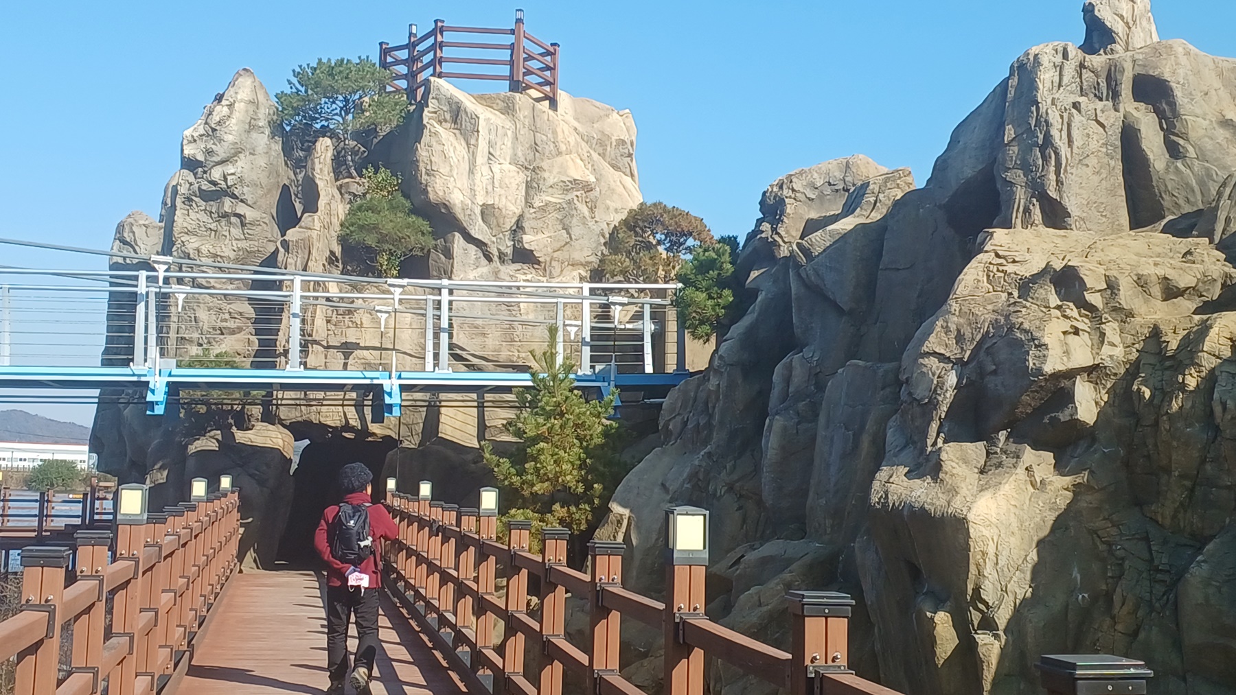남계지 출렁 다리의 끝자락에 도착하면 인공 암석으로 만들어진 공간이 보인다.