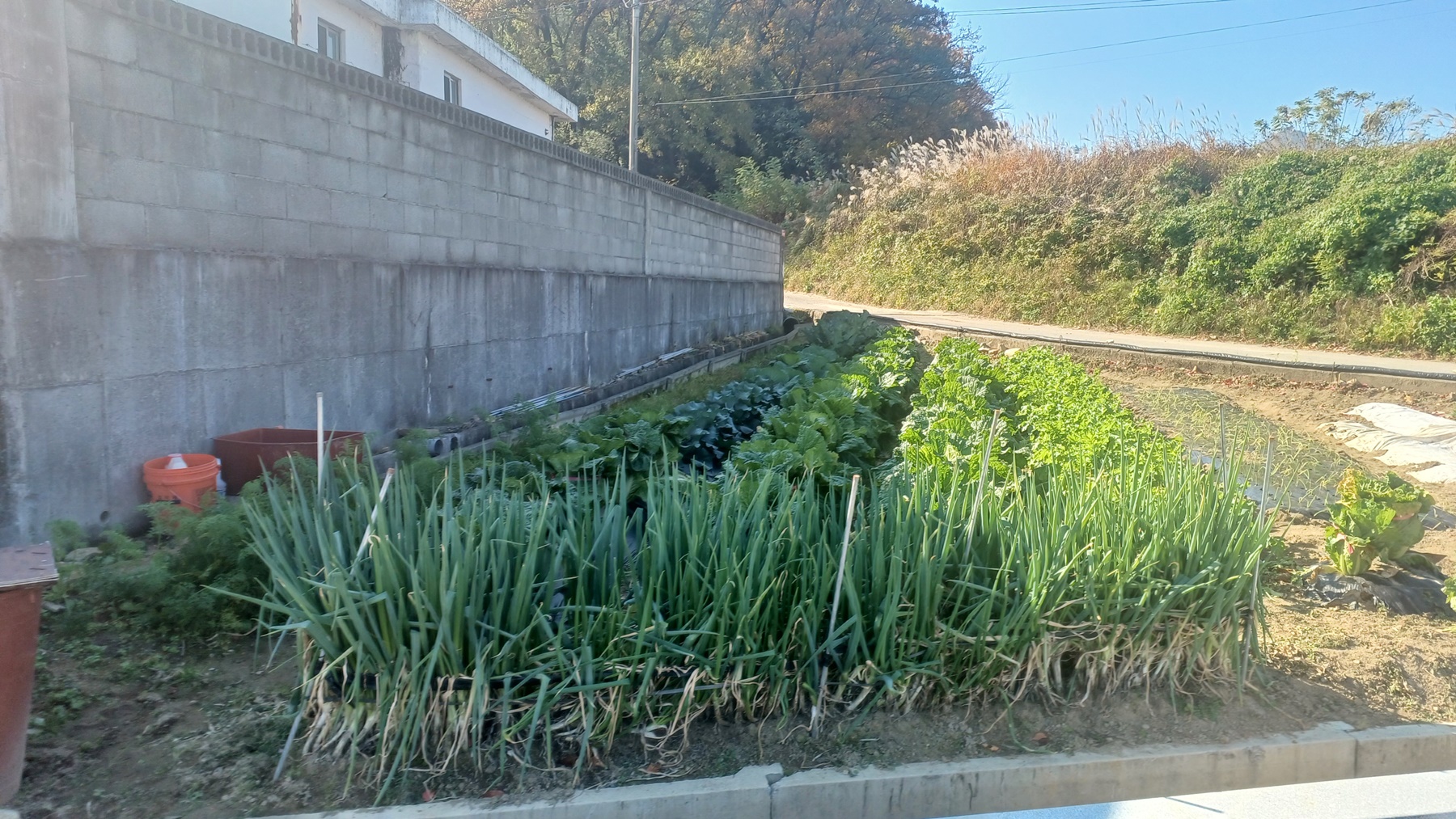홍당무와 배추,파가 무성히 자라는 늦가을의 남계지 수변 둘레길이다.