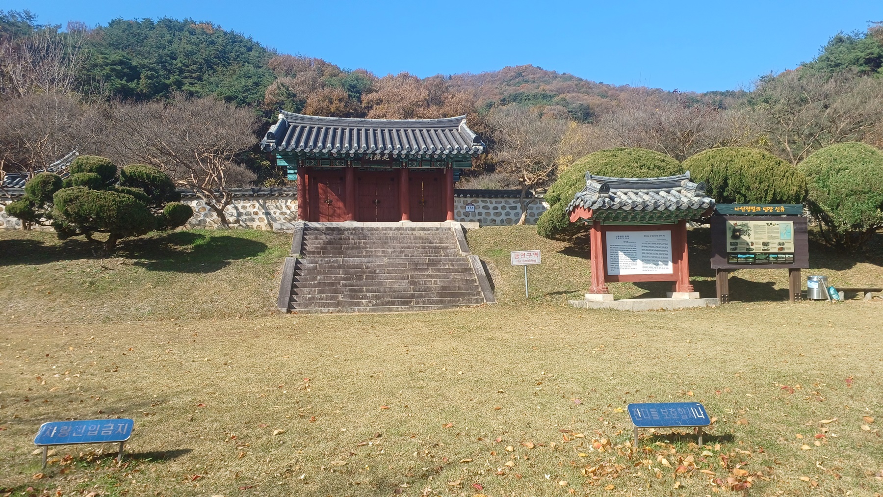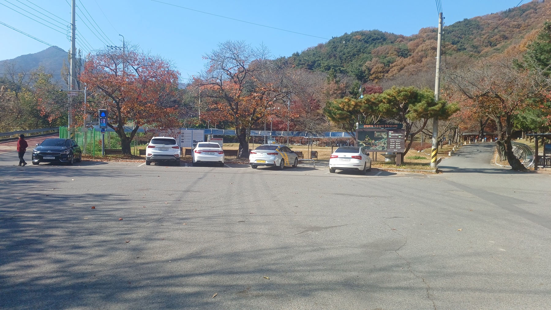 남계지 주차장에서 1.9km이동하여 신유장군 유적지 앞 공영 주차장에 도착한다.