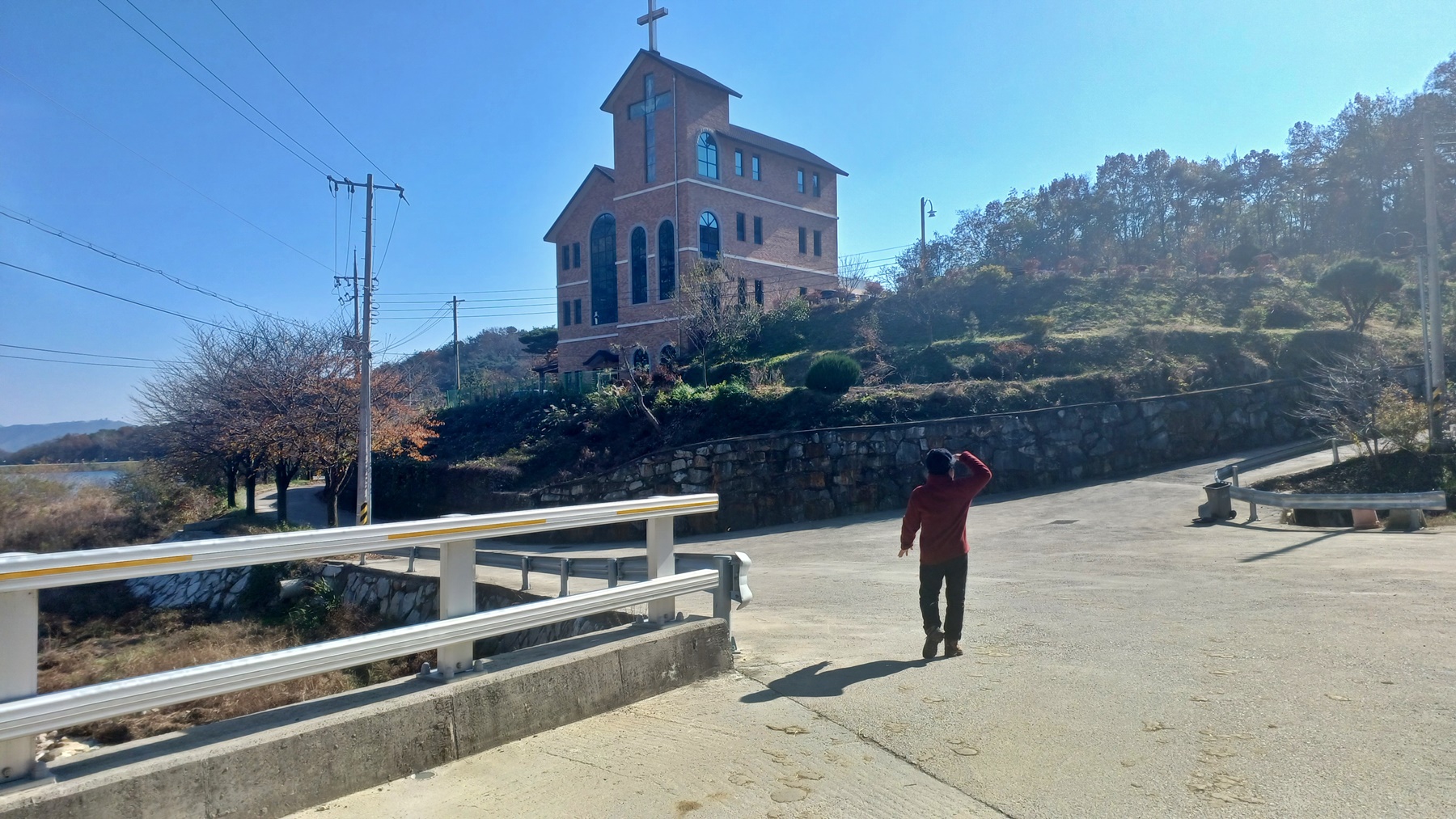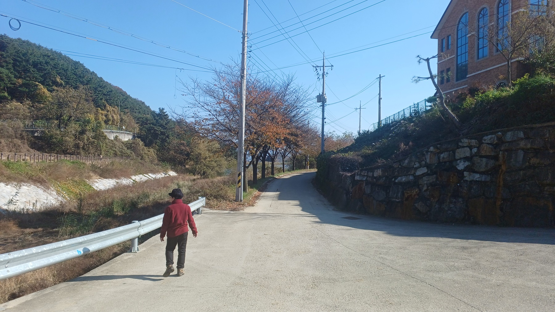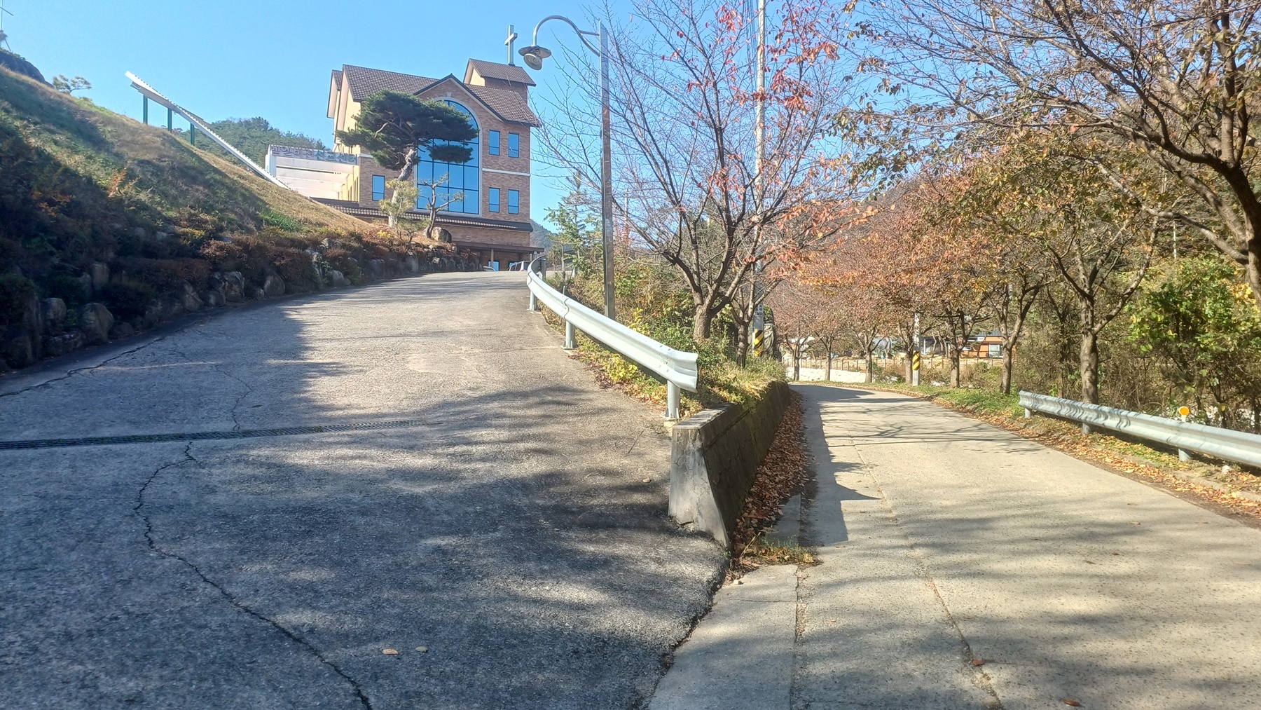 포장길을 따라 벧엘비젼 선교 센터 건물 옆을 지나면