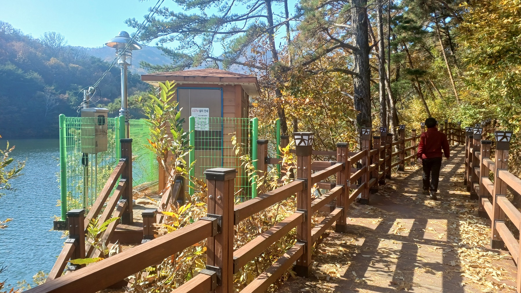 화장실에서 좌측으로 포장길을 벗어나 데크길로 가는 호반 산책로가 나온다.