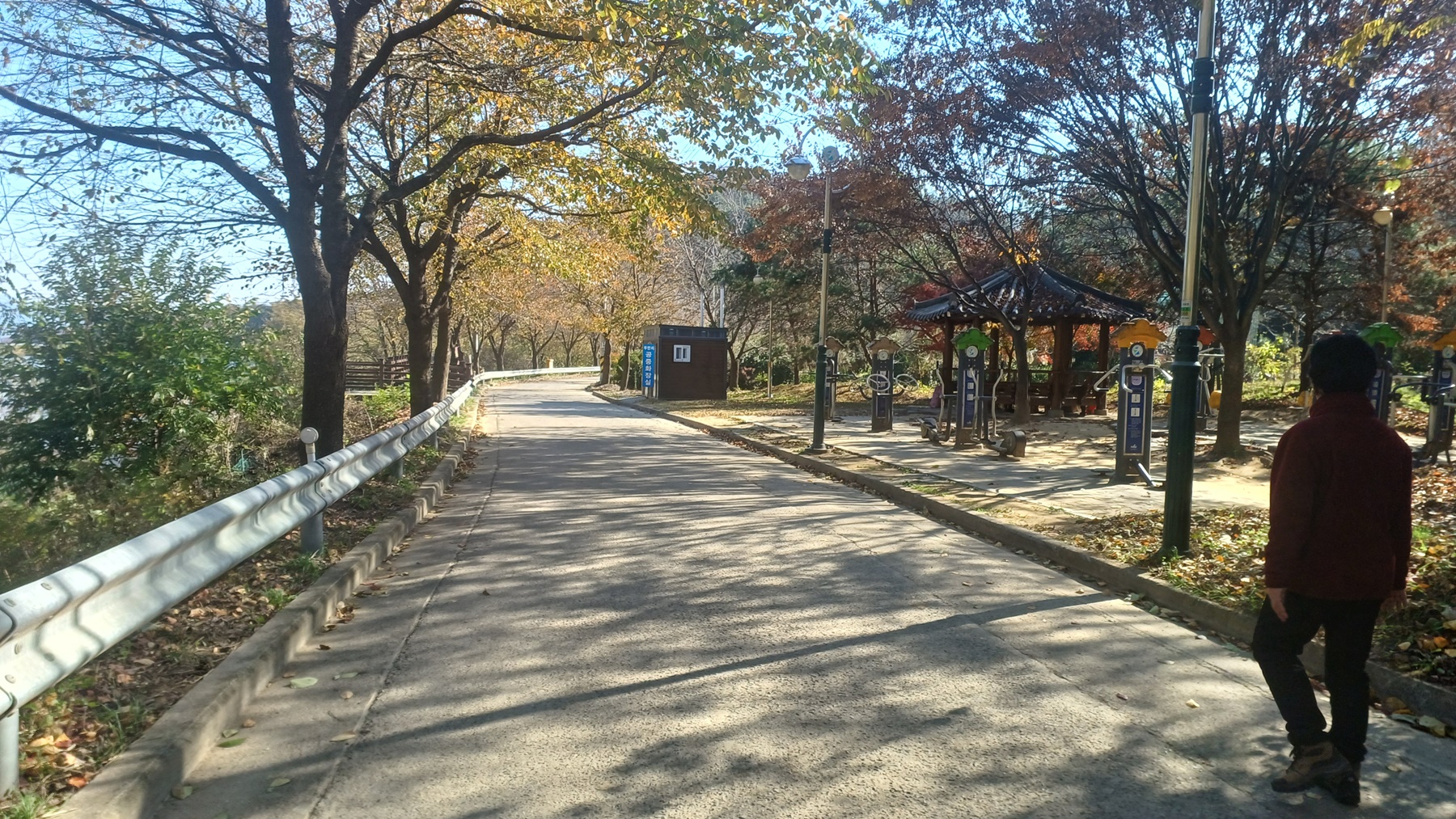 이어 정자와 운동기구,화장실이 보이는 방향으로 가면