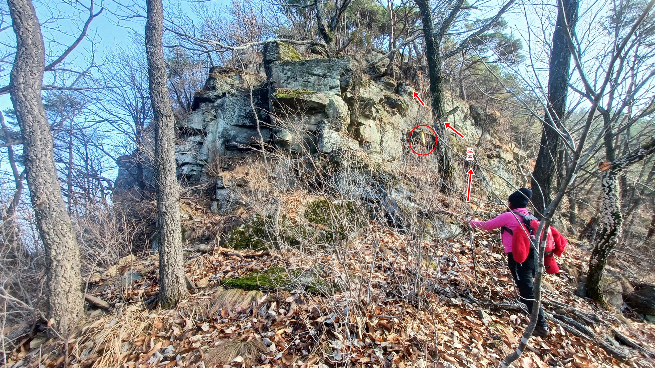 바위 사이를 올라 가파른 능선길을 오르면