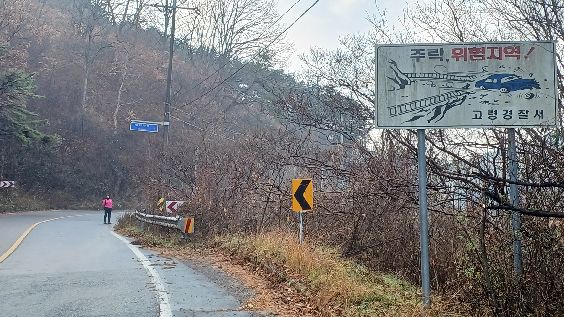 가드레일 위로'대가야로' 표시판을 지나고 나면