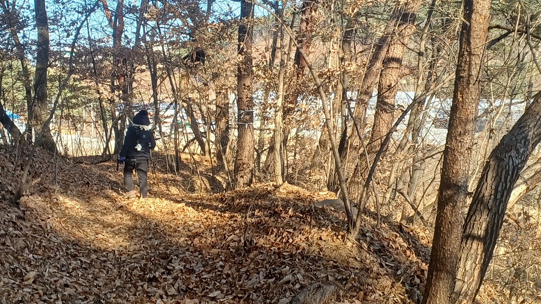 흰건물(물류창고)에 도착하여 마즈막으로 하산한 지점을