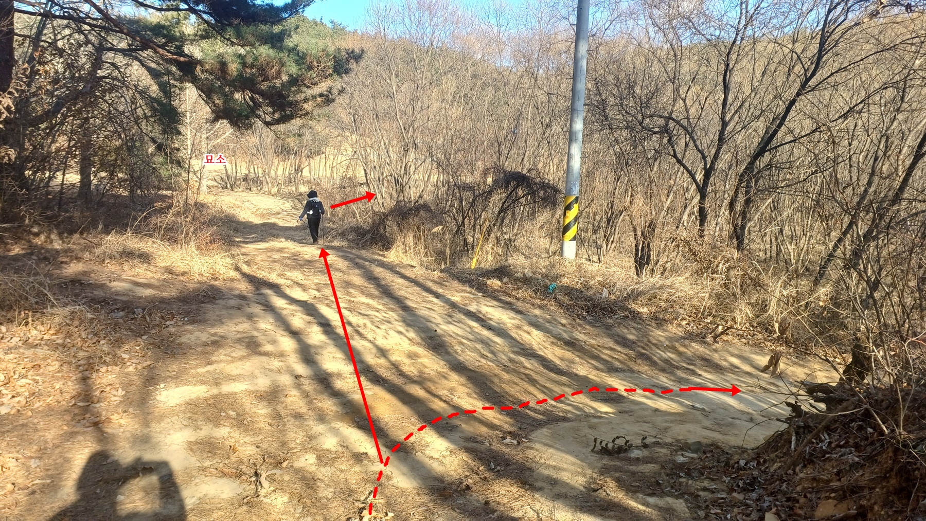 묘소 아랫길을 따라 오목한 산능이 보이는 방향으로 가면