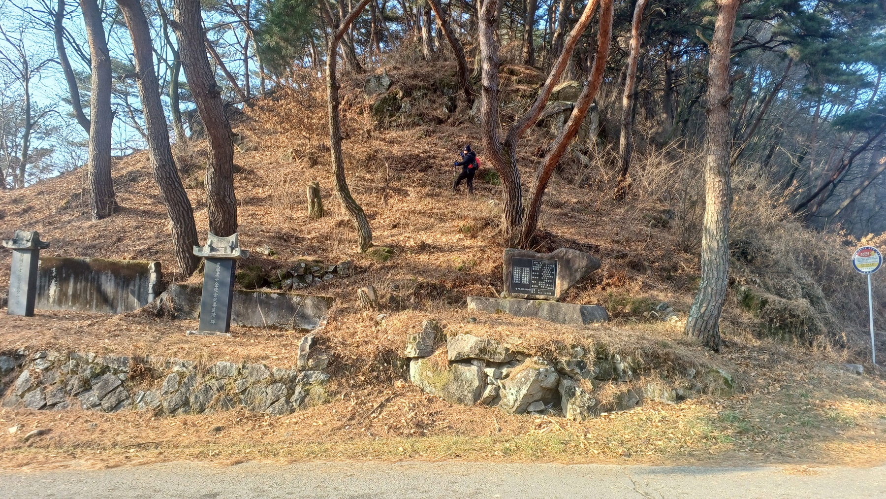 xxx묘비와 xxx유적비를 바라 보면서 지나면