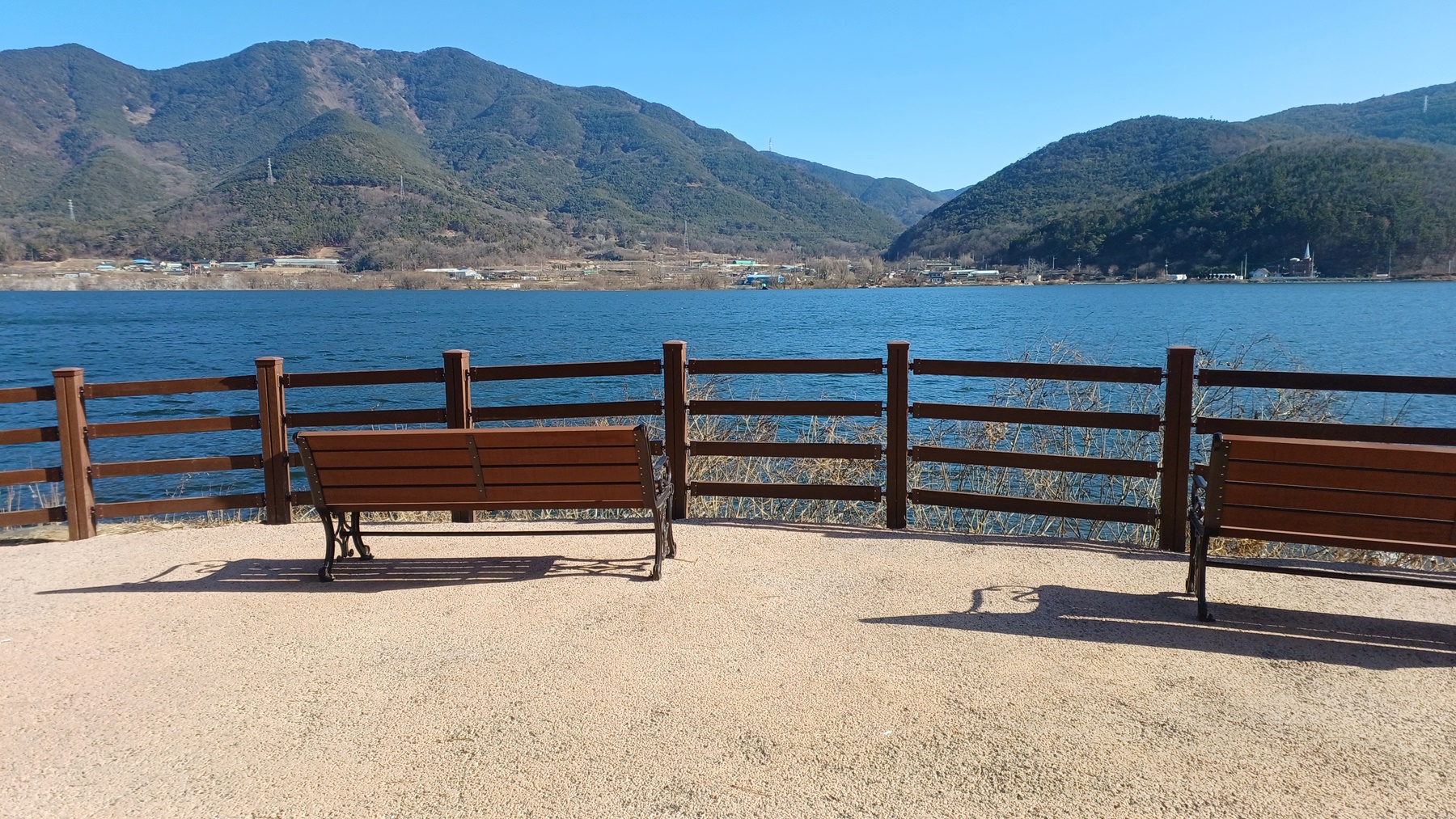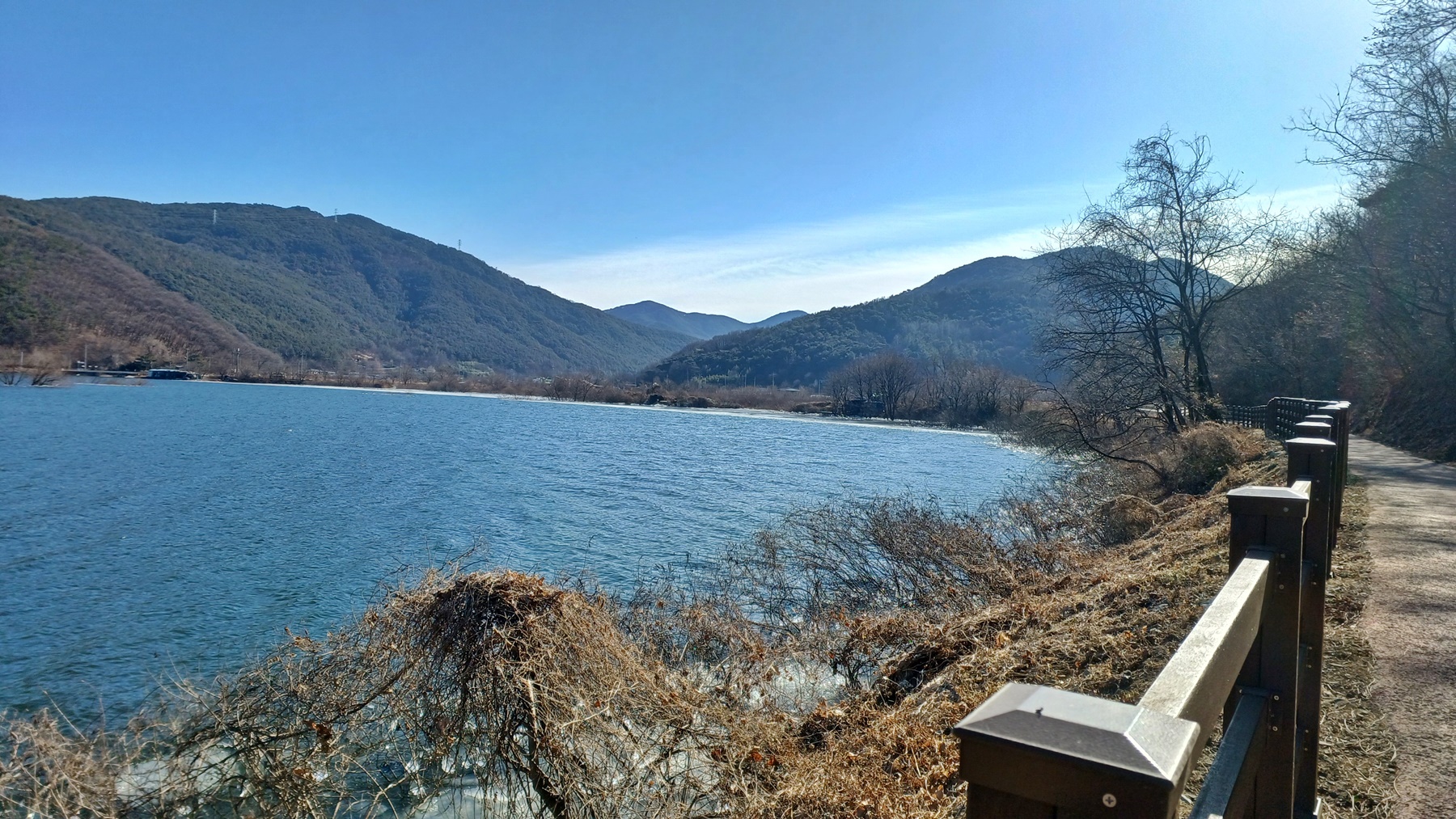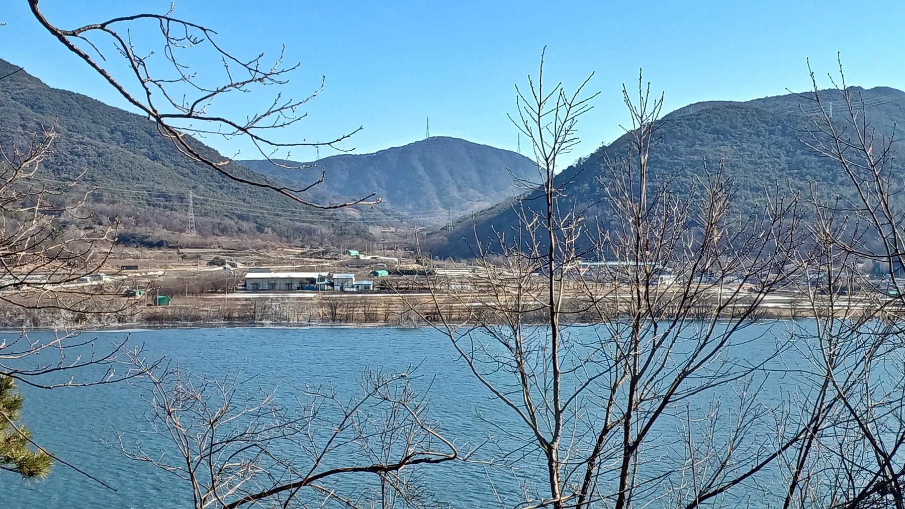 쉼터에서 달창 저수지를 건너 바라보면