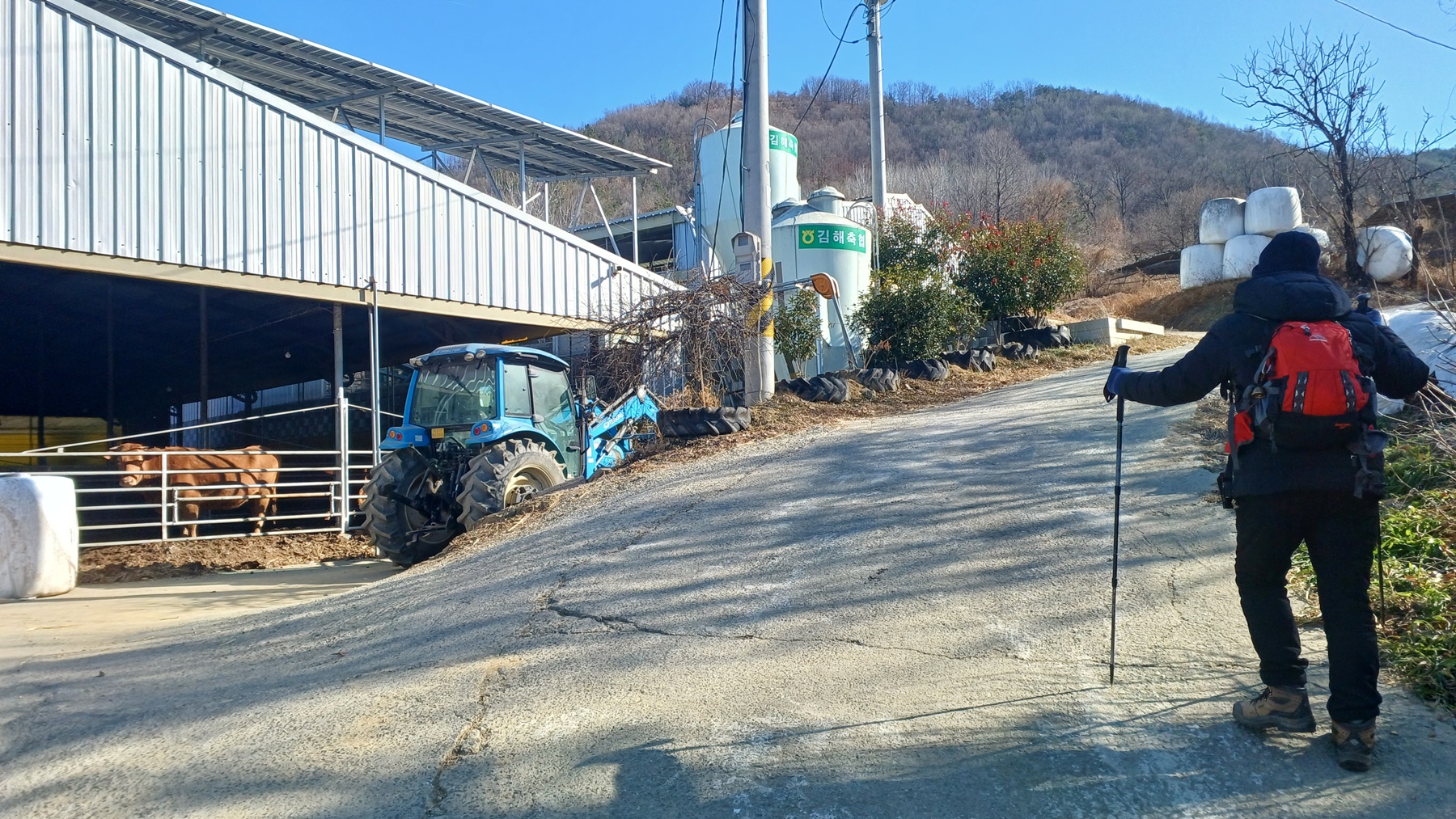 축사를 지나 포장길을 따라가면