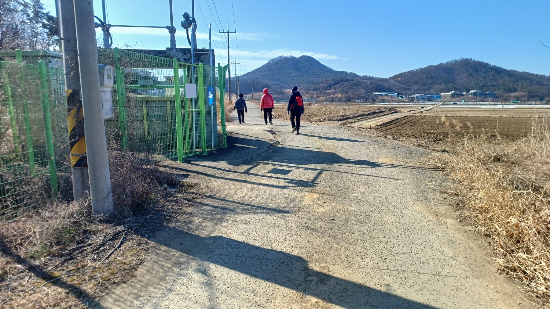 좌측으로 녹색 울타리를 따라 농노길을 따라가면