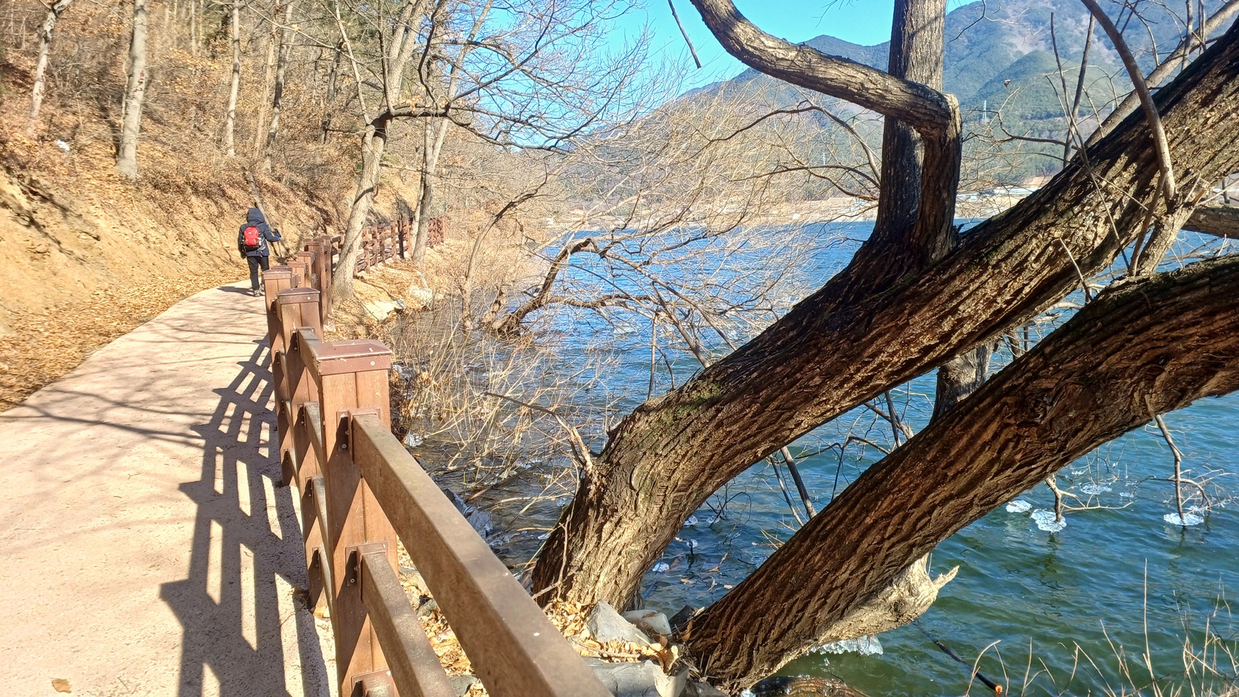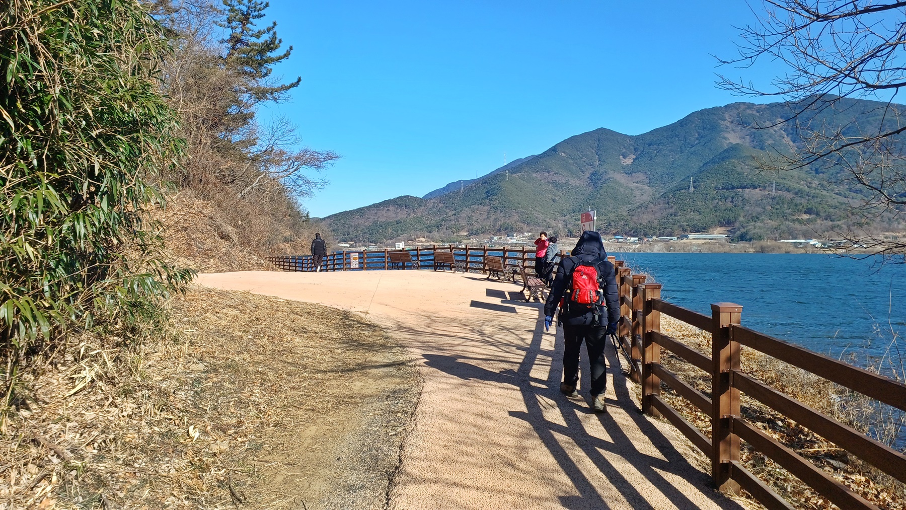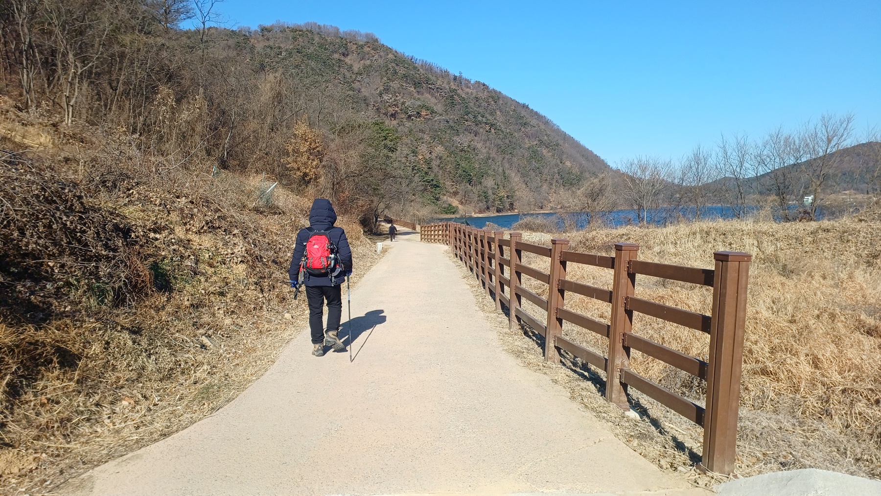 저수지를 따라가는 둘레길이다.