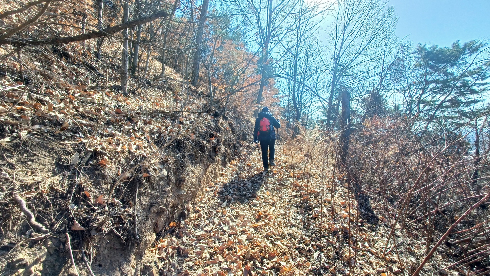 계곡 우측으로 가파르게 오르는 매트길을 따라 오르면