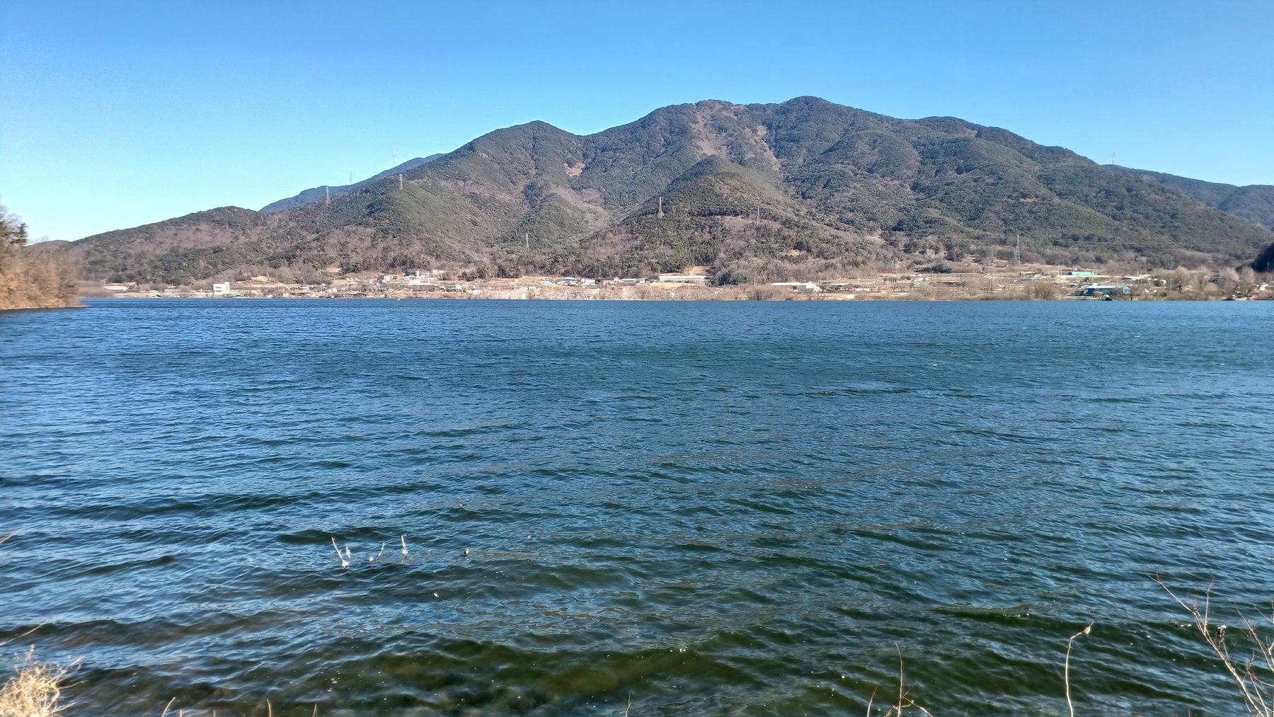 저수지 건너편으로 수복산이 뚜렷이 보이고