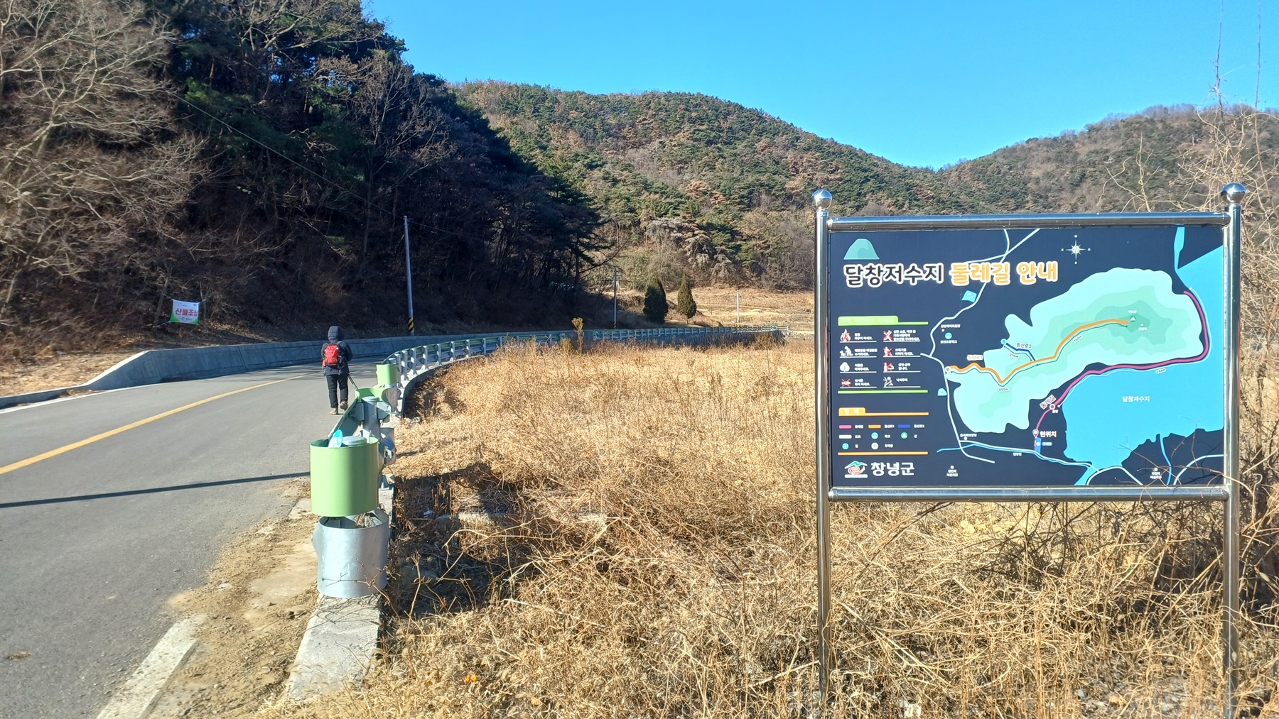 달창 저수지를 따라가는 달창 둘레길을 따라 간다.
